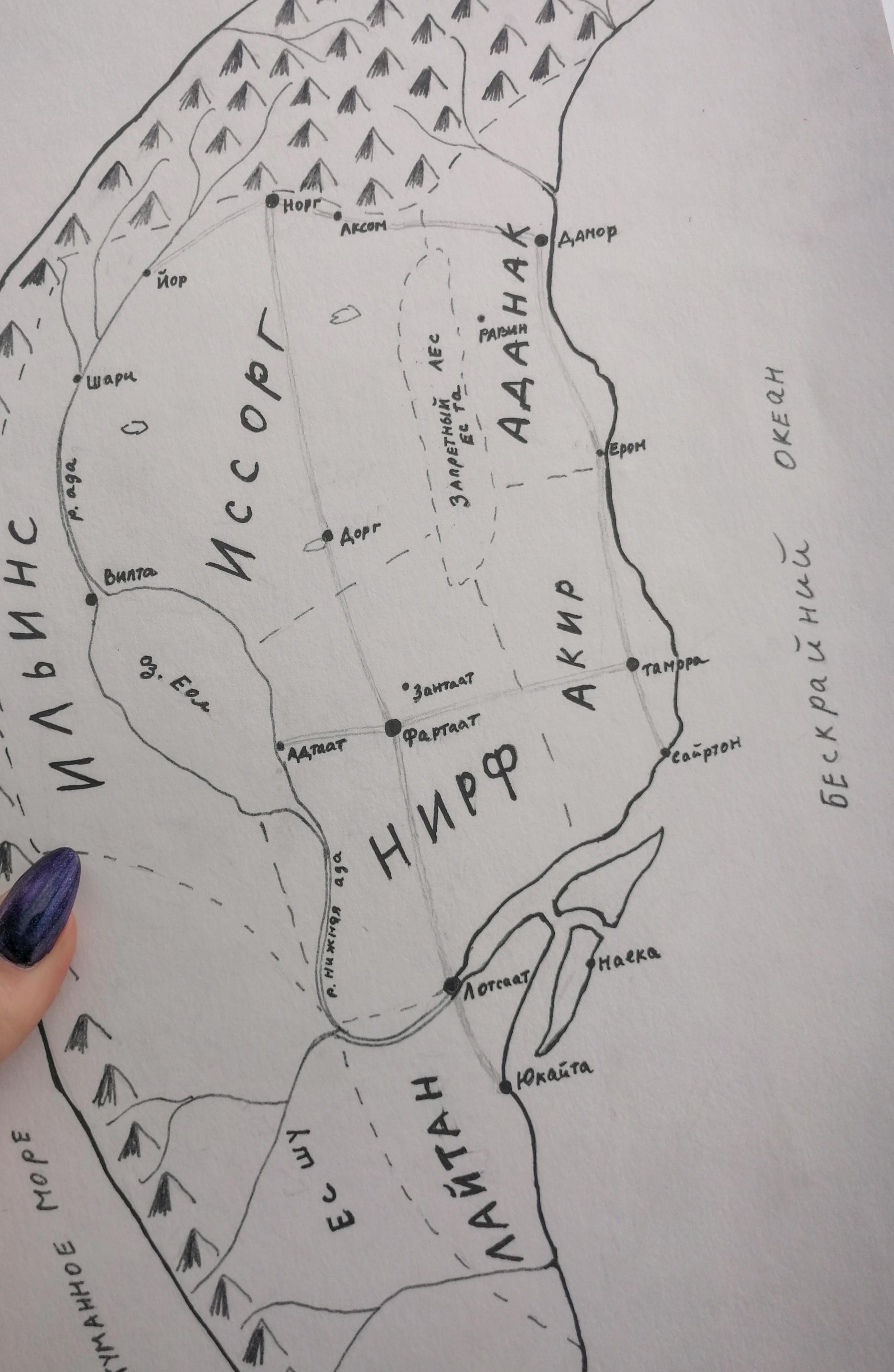 Перед вами карта материка Каа. Да, она от руки, я вам не художник :D
