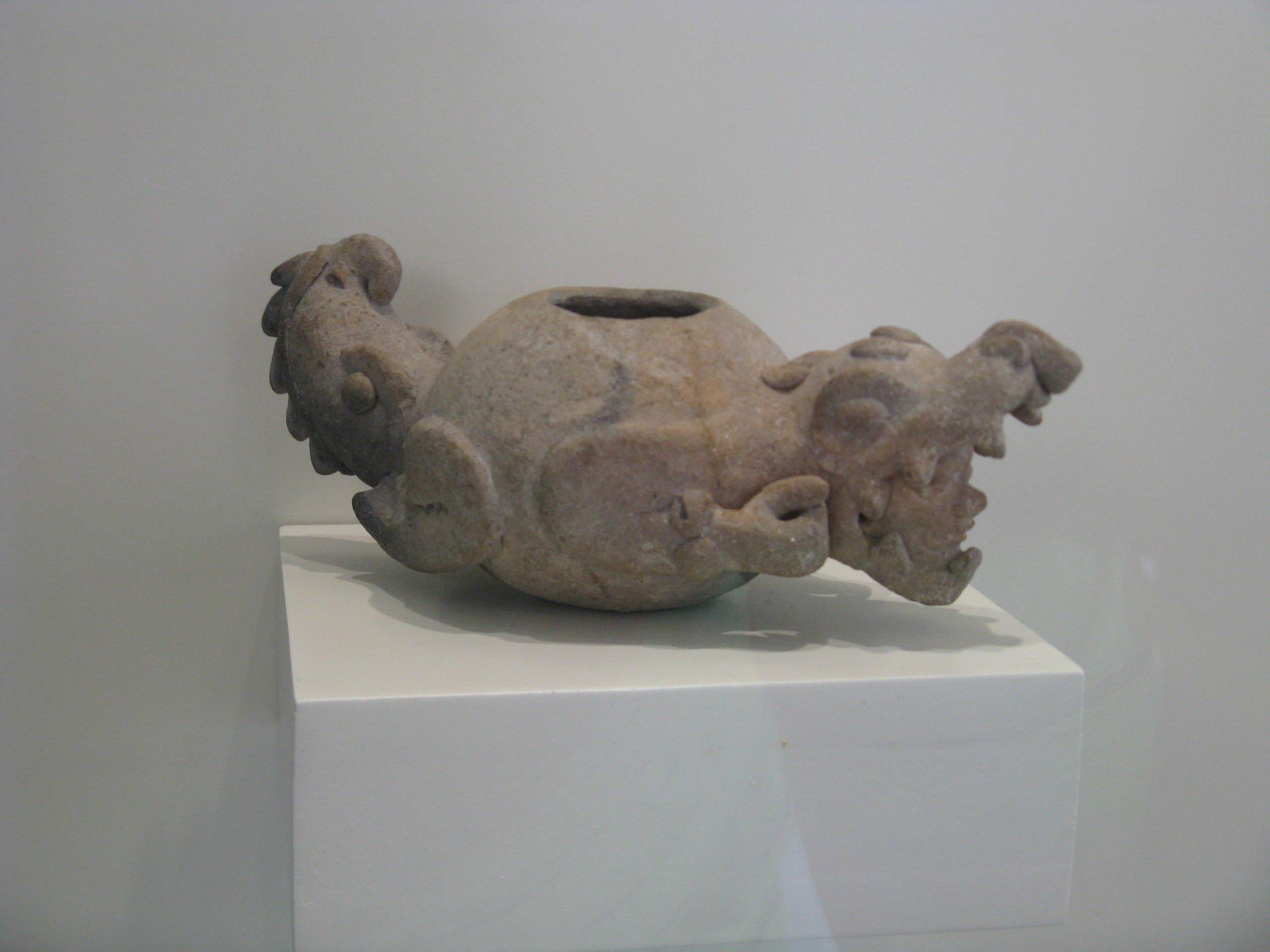 Сосуд. Лицо, появляющееся из пасти крокодила. Бог D (?). Постклассический период. Моя фотография.