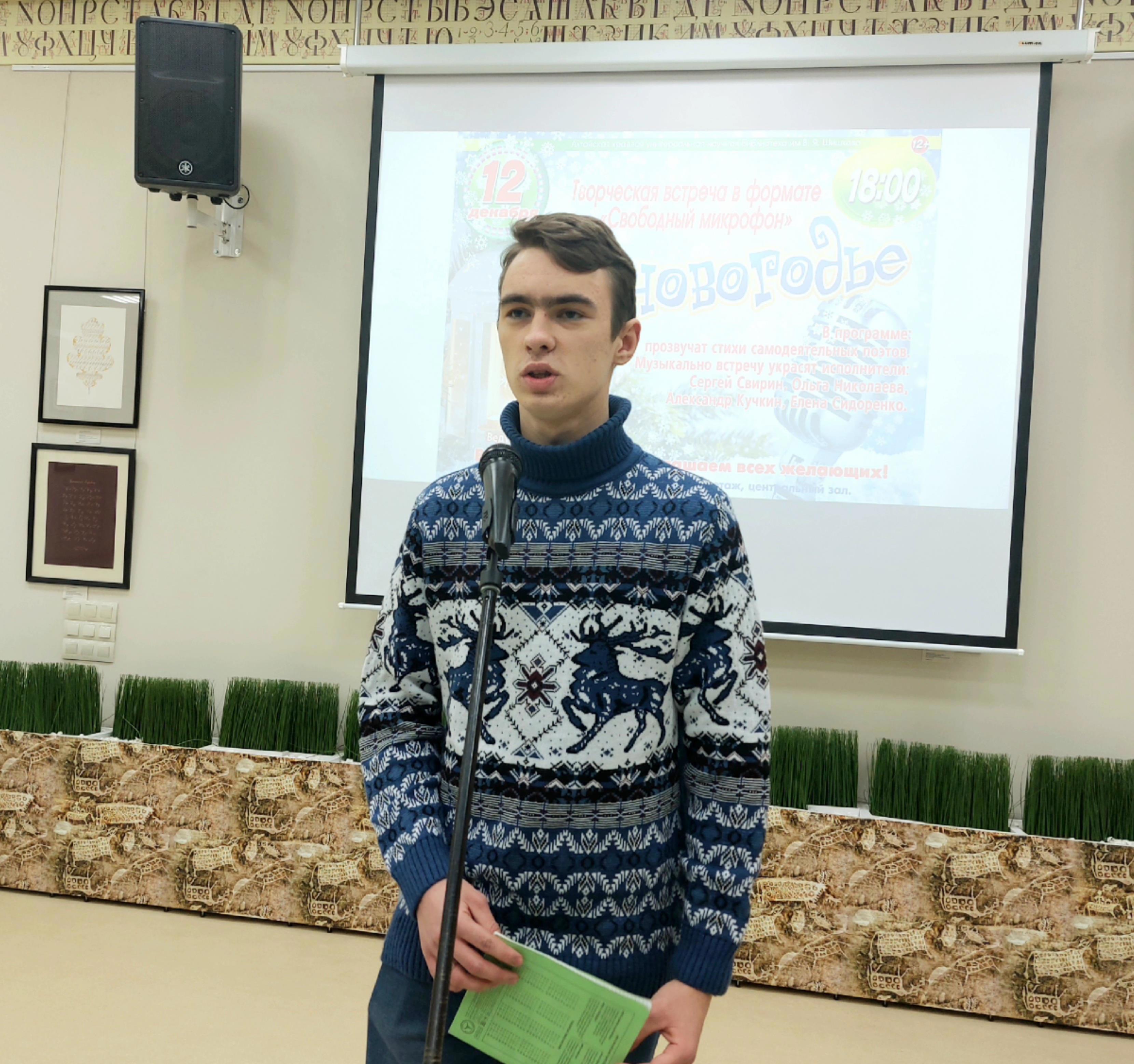 прозвучали стихи самодеятельных поэтов, свои произведения на суд зрителей представили молодые авторы: Алексей Мансков, Маргарита Пятецкая, Матвей Спесивцев.