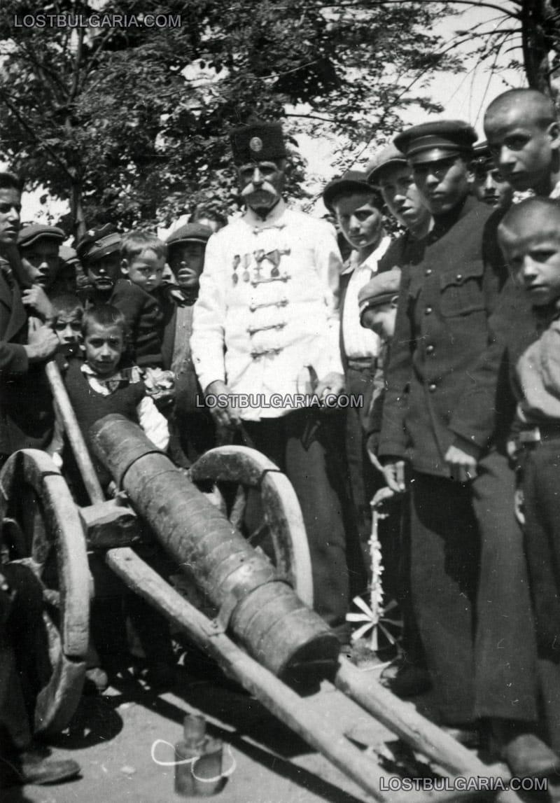 Деревянная пушка болгарских повстанцев и один из последних участников восстания 1876 года.