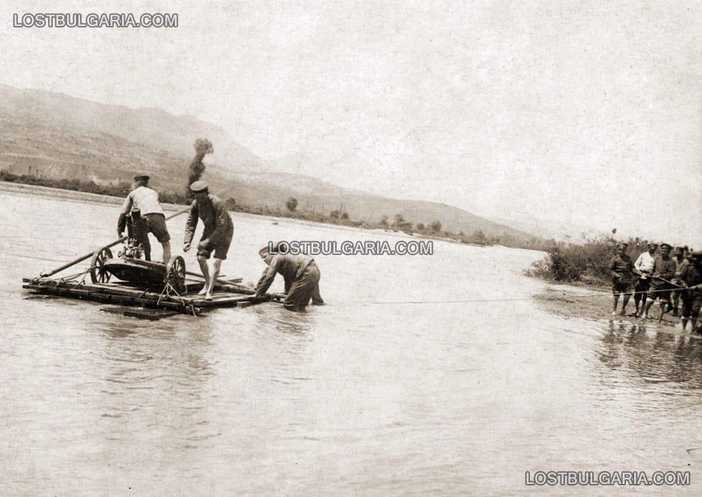 Это тоже миномет,который везут через речку где-то в Македонии.
