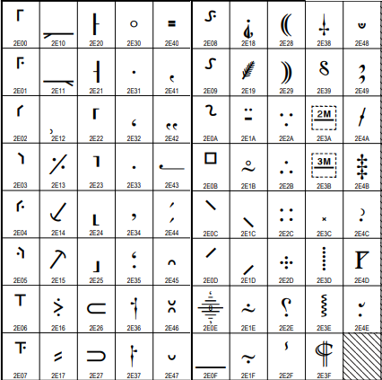 В монгольском и кхмерском языках вместо многоточия ставится квадрат, в хинди вместо точки – прямая вертикальная линия, а в тайском указание на множественное число существительного указывается специальным знаком ๆ. В эфиопском языке знак вопроса указывается тремя вертикальными точками, а точка – четырьмя точками, выстроенными в квадрат!