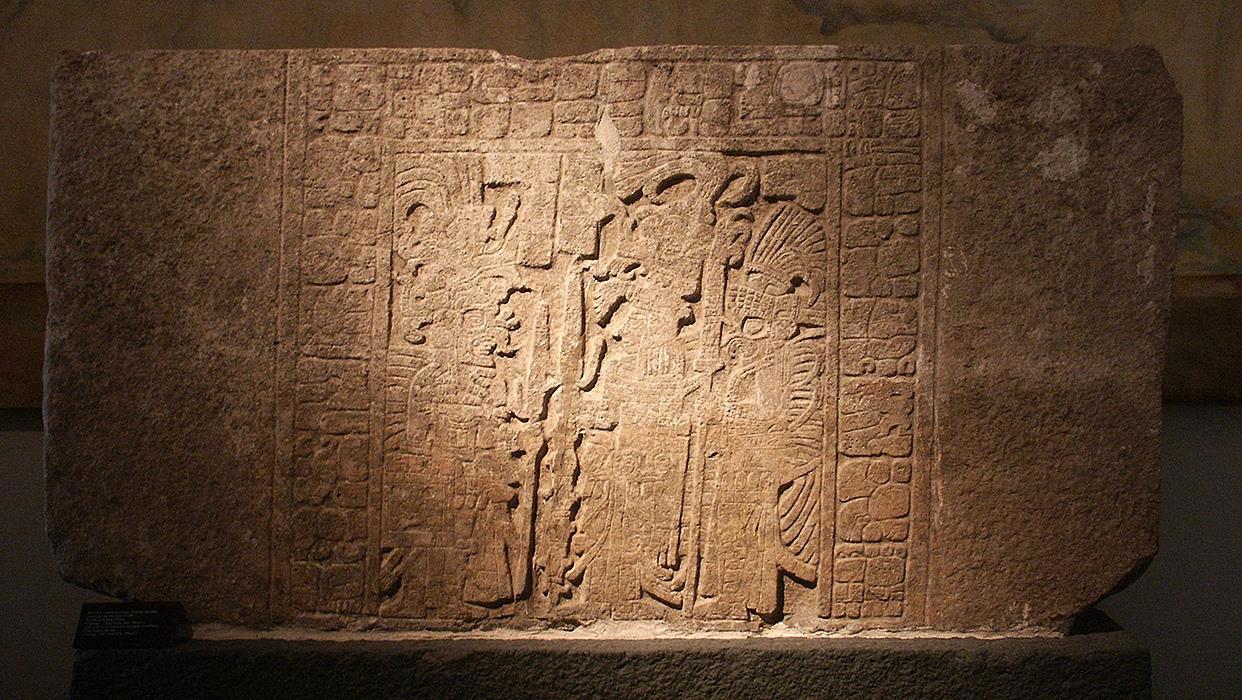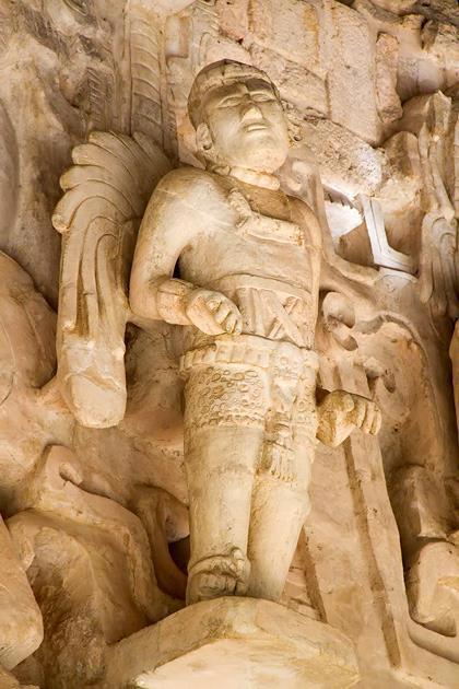 Штуковая фигура с фасада гробницы Укит Кан Лек Ток'а в Эк' Баламе