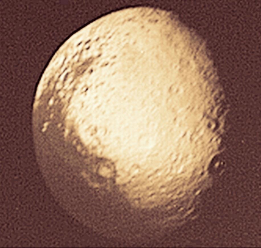 Особенность Япета - он двухцветный, чёрно-белый, с четкой границей в виде знака инь-ян.