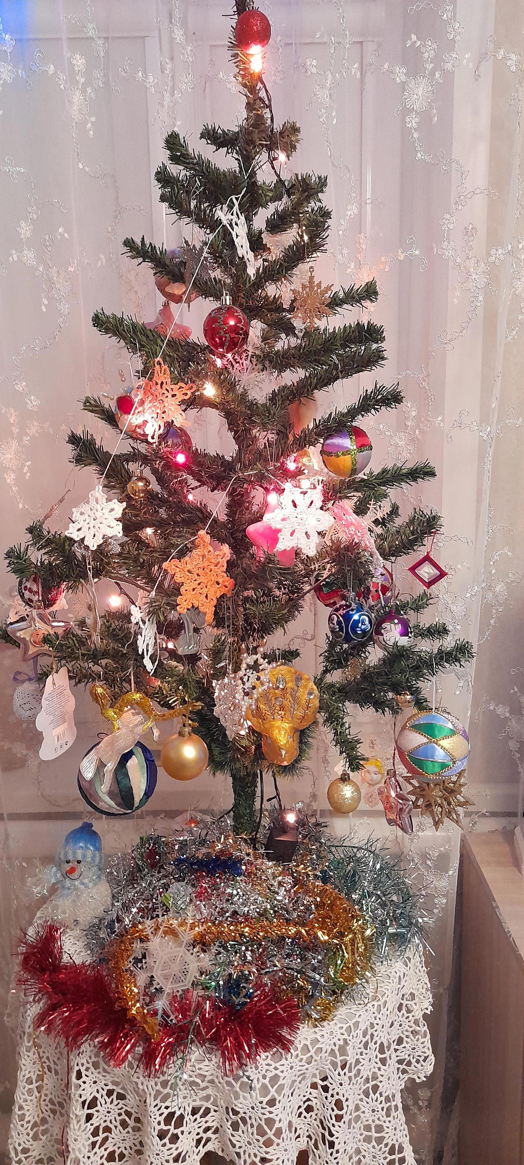 Ну, тут я слегка покривила душой, нет у нас еловых лесов, а если и были бы, то ёлкам сто пудов не холодно. Даже ночью температура ниже ноля не опускается. Хоть и двадцать четвертое декабря. У меня такое долгое вступление только для того, чтобы похвастать своей ёлкой, которую совместно достали с чердака и наряжали сегодня. А любой совместный труд, кроме уборки картошки, да и то не всегда, у нас заканчивается, или происходит параллельно со скандалом. Вот такие мы еб@нутые, чо поделать. Ну и сама ёлка.