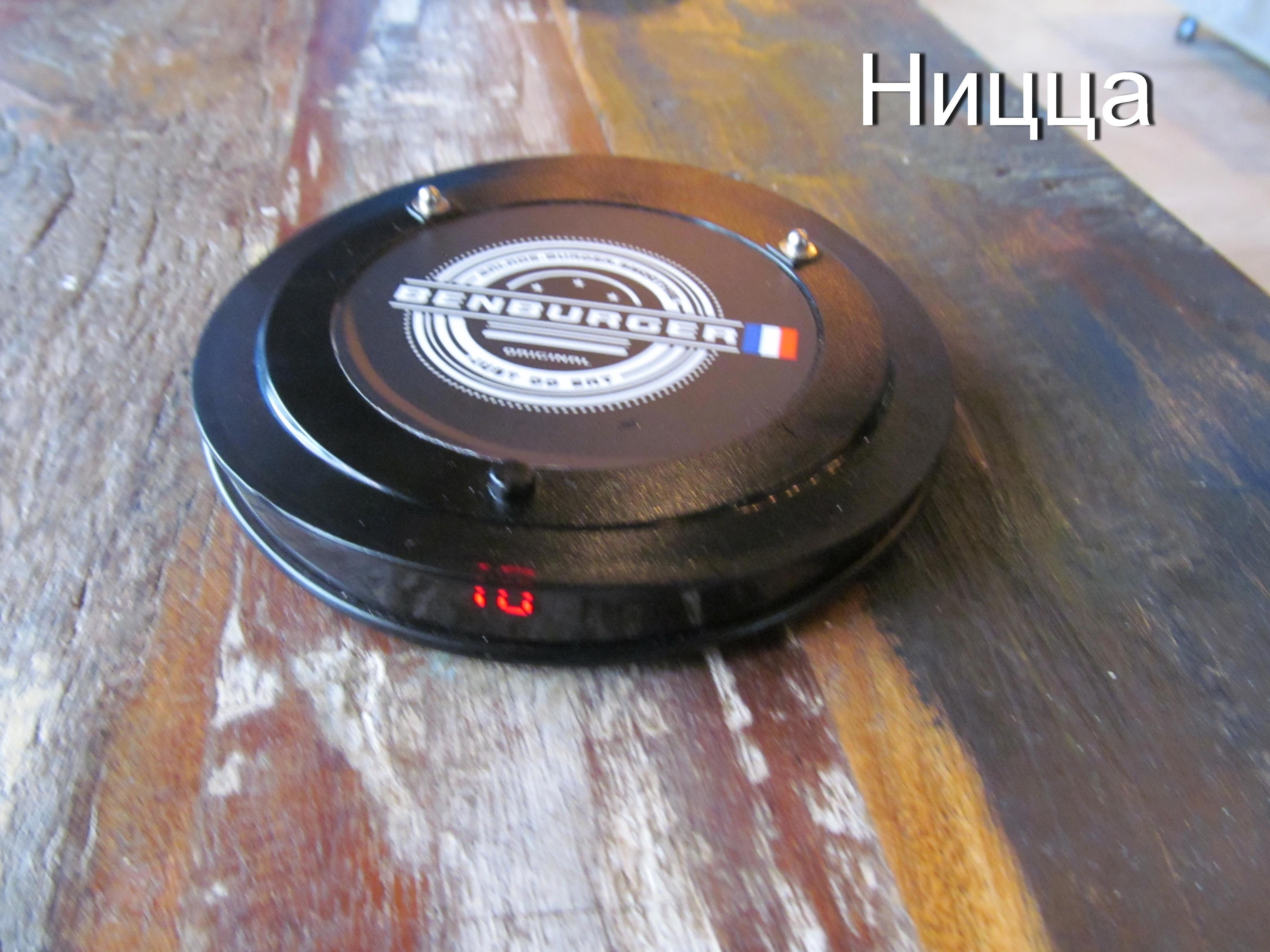 Что же, скоро и самолет... Вернувшись из Монако, зашли в хостел, забрали рюкзачки, попрощались... И решили по пути в аэропорт перекусить...  На Жан МЕдсан зашли в модерновое кафе, заказали по бургеру с пивом... Денег у нас в руки не взяли – кидайте, мол, в какую-то трубку... И поставили на столик странный прибор с мигающими лампочками... К чему такой прибор – не знаем! Лампочки то красным мигали, то зеленым... Ага, вот из-за стойки машут – забирайте, мол, ваш заказ, готово же – лампочки на приборе давно зеленым светятся!