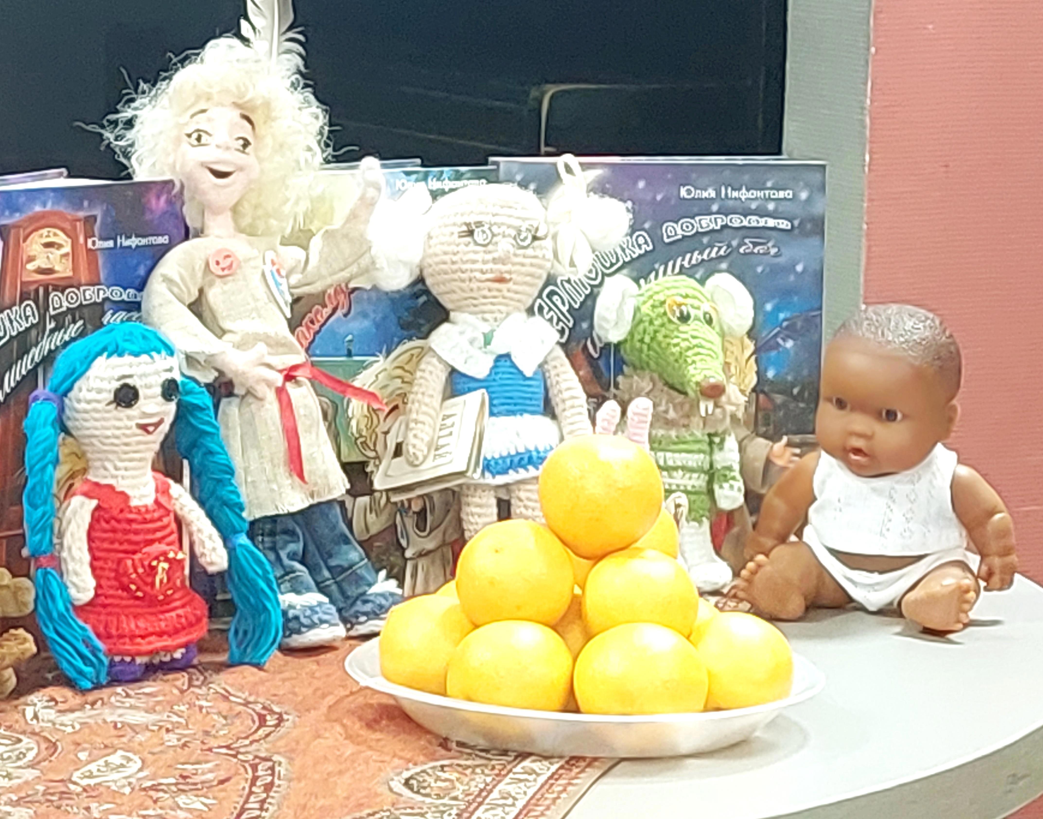 На встрече вместе со мной были куклы – образы главных героев сказки, этих забавных куколок связали и изготовили мои читатели, точнее их мамы и наставники. Моя кукольная коллекция постоянно пополняется новыми экспонатами, только вот очень жаль, что никто не хочет сделать двух главных злодеев сказки – злых волшебников, что живут в старом сарае.