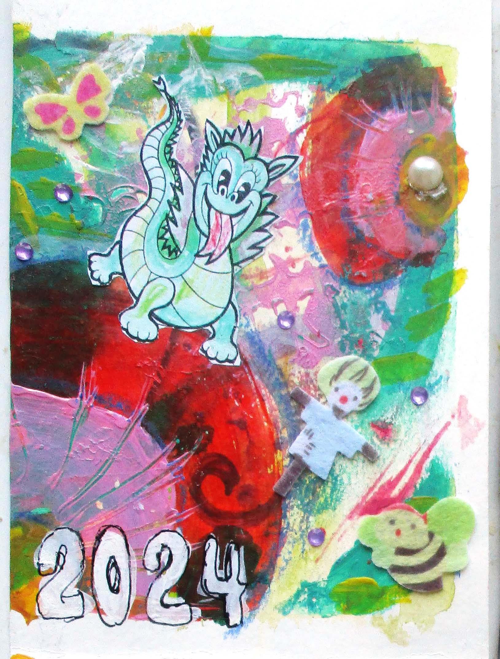 Коллегам на работе сделала открытки с символом наступающего года. Это одна из них.