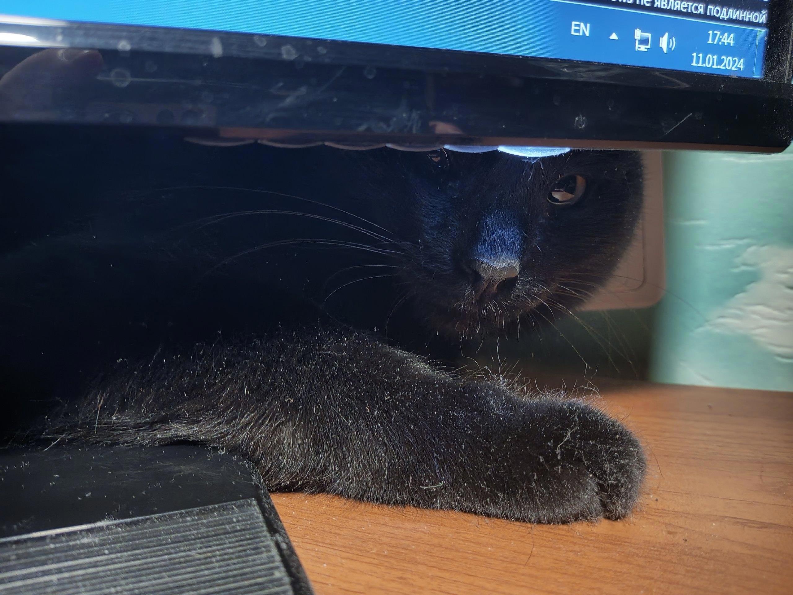 Пы. Сы. Покажу пока просто две бесстыдные морды. Один постоянно вот так залезает за монитор, что приходится его со скандалом выгонять, другой просто ведёт себя по жизни как кретин.