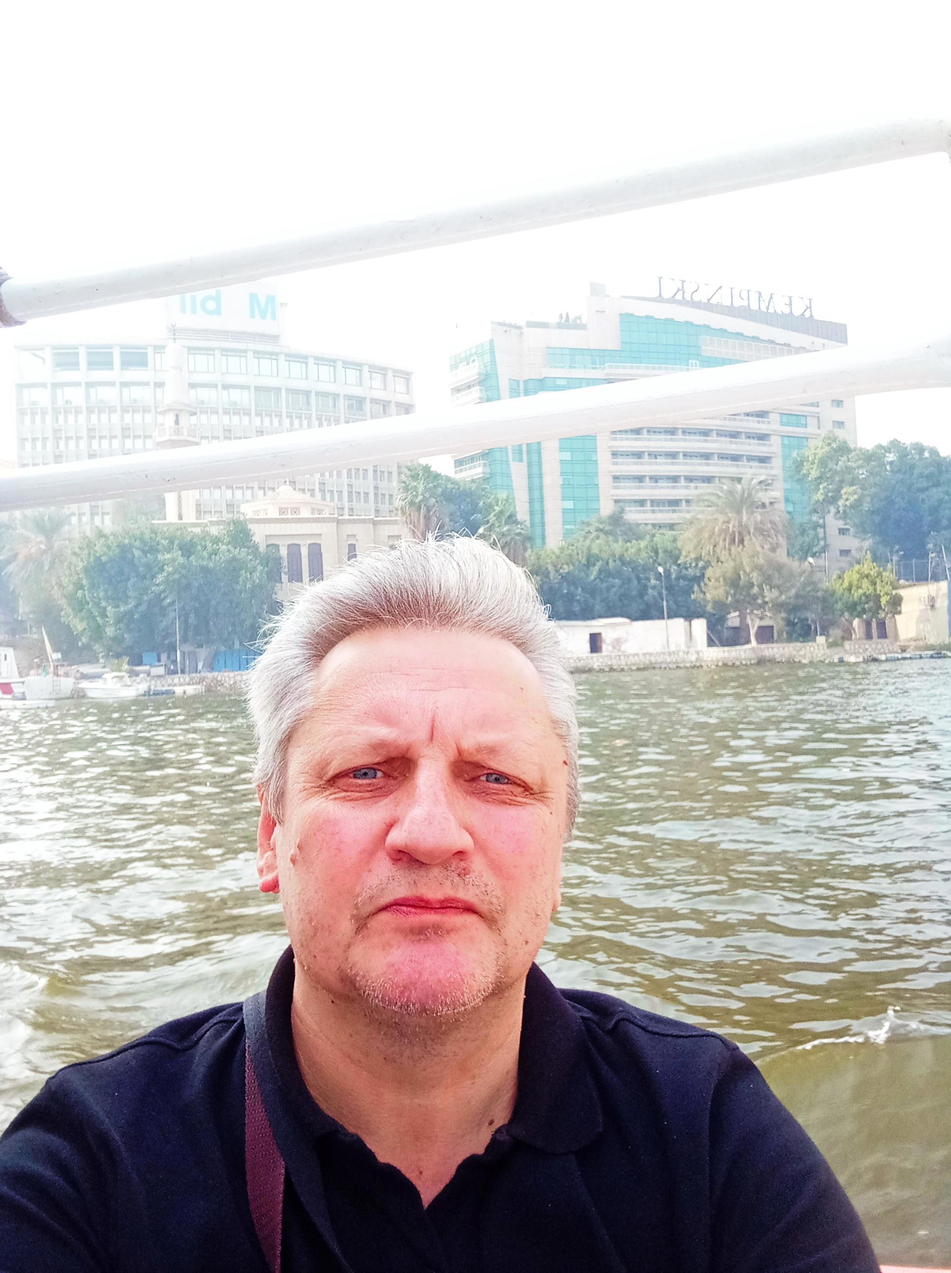 Лодка оказалась одна, но большая и с мотором. Целый катер! Поплыли... Нил - примерно как Нева. Вода мутная. В воздухе – смог. Но, в целом – весело. Моторист музыку включил – эх, по волнам, погнали!