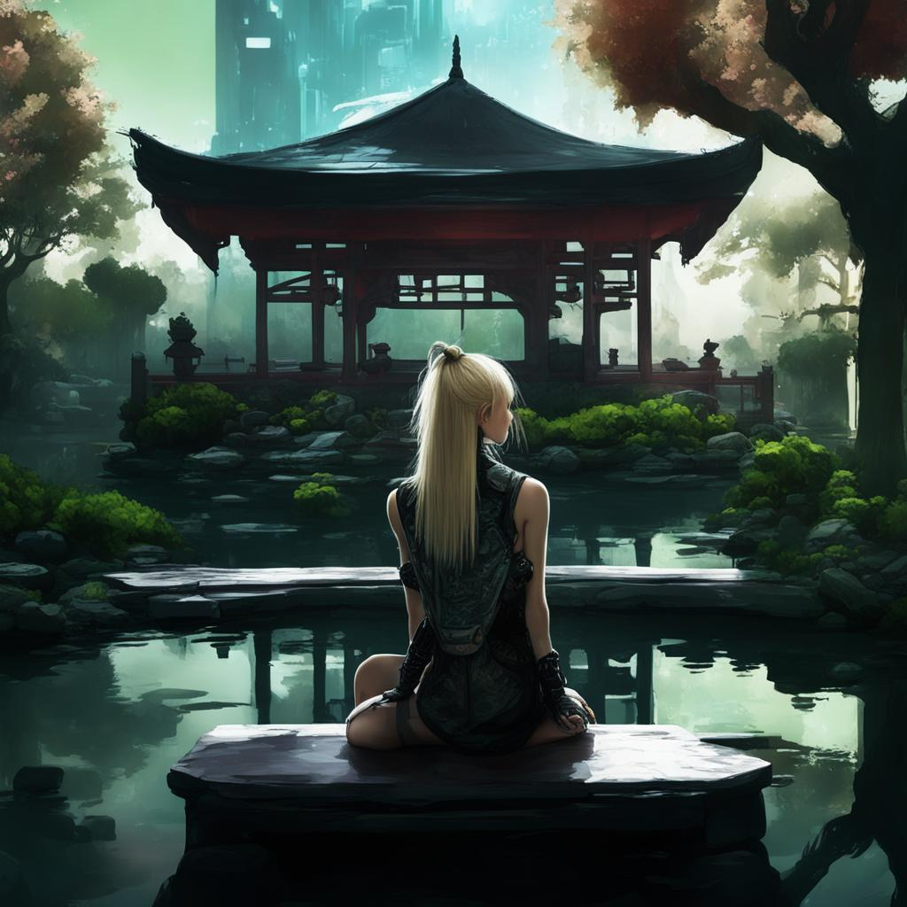 А это героиня в Ботаническом Саду. Сад получился, а героиня - не совсем. У неё явно лишние ноги, но из-за пейзажа решила всё же оставить.