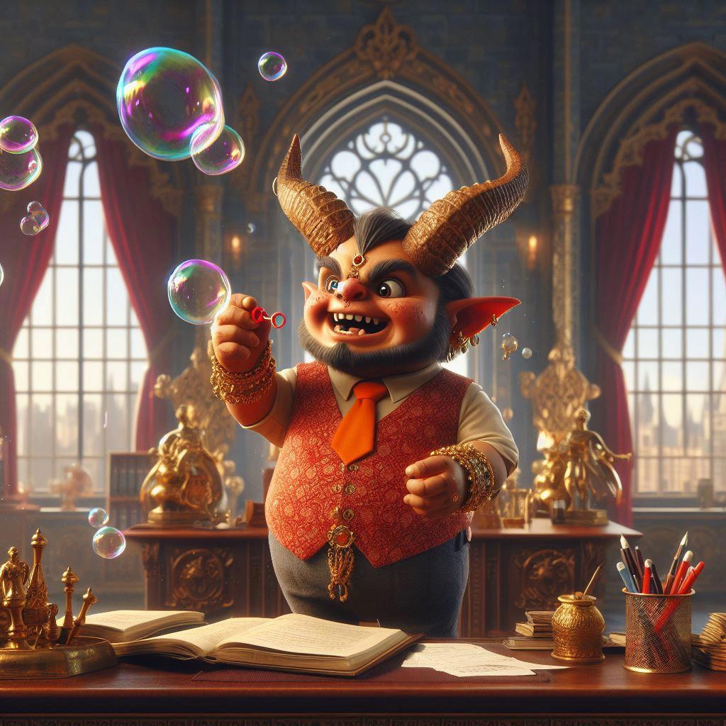 Нейросеть с моей небольшой помощью сгенерировала одного из персонажей Александра Рудазова - демона, который любил пускать мыльные пузыри. По-моему, очаровашка.
