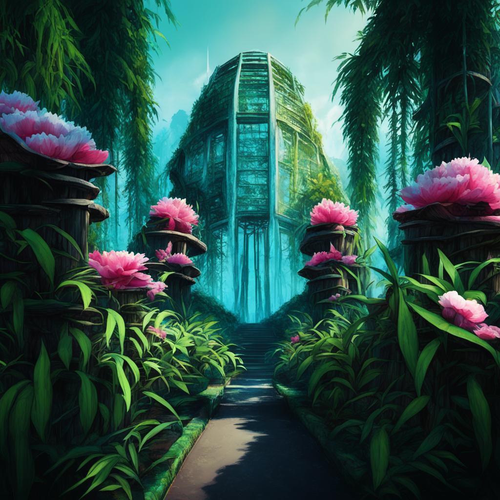 Действие в новой главе происходит в ботаническом саду. Его изображение от нейросети Кандинский.