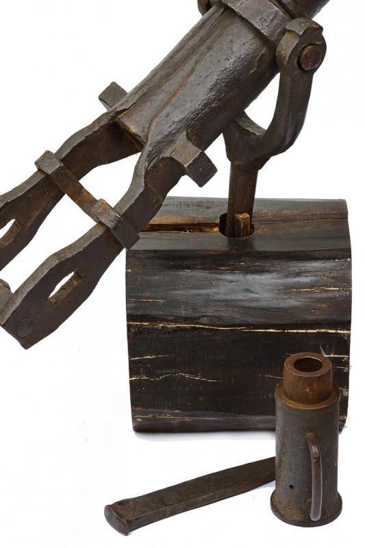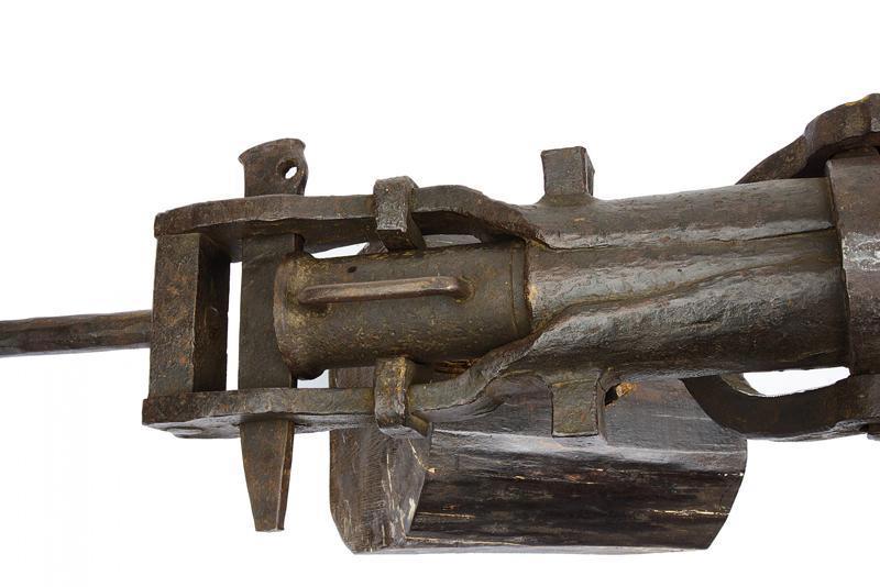 Ствол пушки ковано-сварной, дополнительно укреплен восемью железными обручами. Зарядная камора отъемная. Это делалось для ускорения заряжания орудия. В комплекте к пушке такого типа обычно было несколько таких камор. При производстве выстрела, камора вставлялась в ствол, сзади подпиралась железным клином. Пушка установлена на вертлюжном станке.