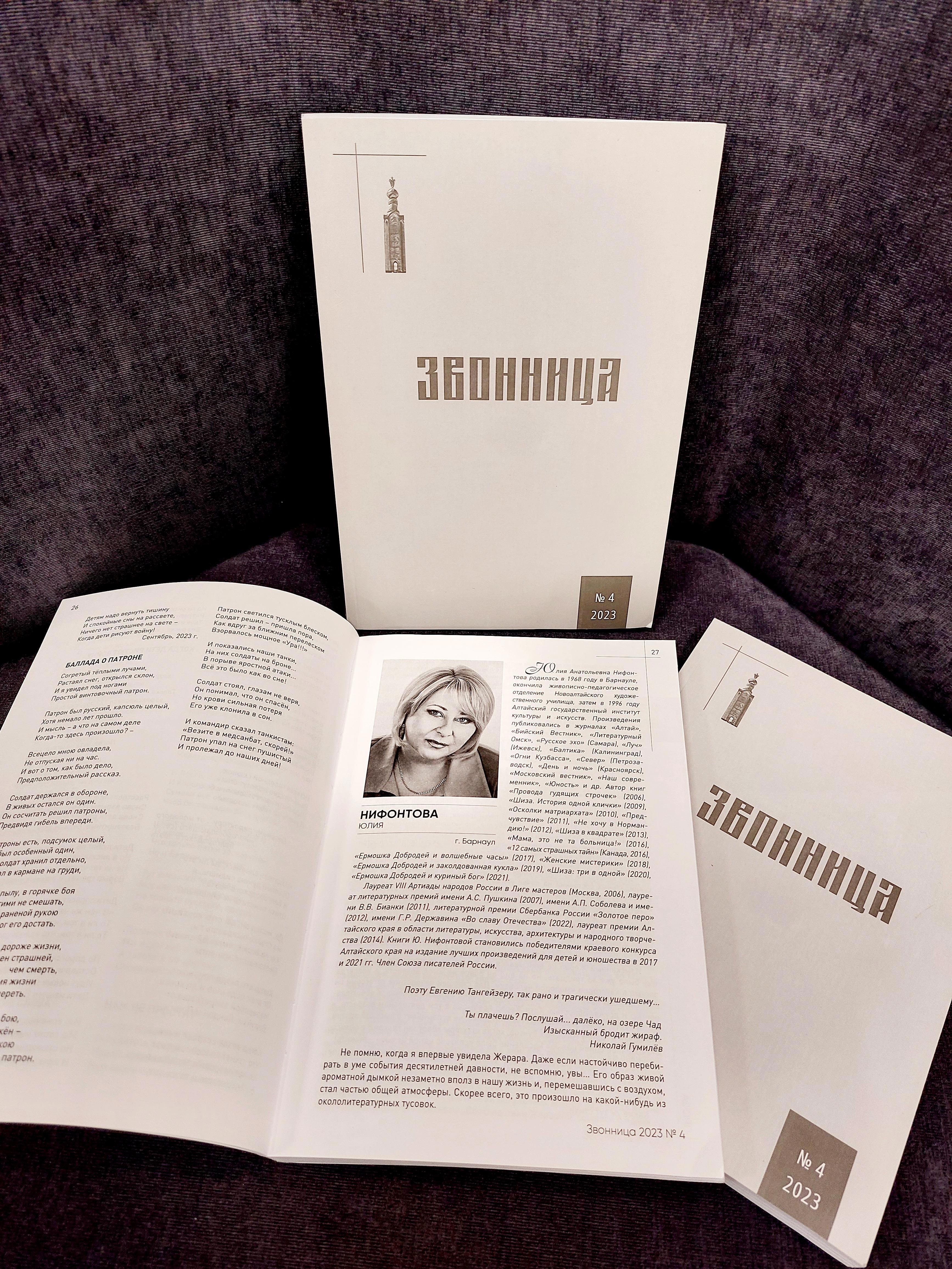 Под самый новый год пришло замечательное известие, которое можно назвать чудесным новогодним подарком - мой рассказ "Изысканный бродит... Жерар..." был опубликован толстом литературном журнале "Звонница" № 4/2023, который издаётся в городе Белгороде...