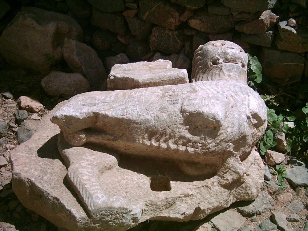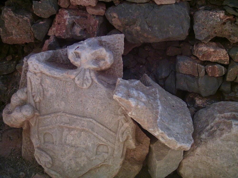 Стена крепостной башни с кусками древнего храма, использованными как стройматериал.