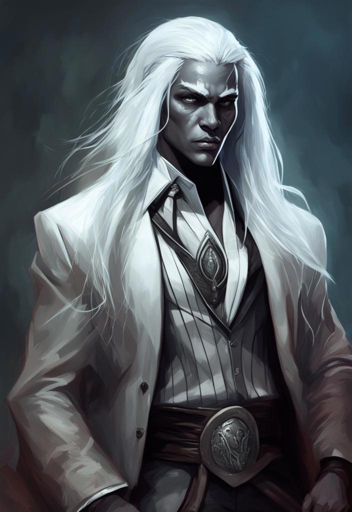 Я перевела ошарашенный взгляд на нежданного гостя. Потрепанный пурпурный костюм-тройка в тонкую белую полоску на голое тело. Видавший виды невысокий цилиндр с надетыми на него за ненадобностью гогглами с дорогущим пировидиконом. Графитово-серая кожа, татуированная белыми веве для призыва духов и защиты от них, водопад белых волос до пояса и порочные серые глаза. Довершала образ хунгана костяная трость и белая маска-калавера в виде узорчатого человеческого черепа.