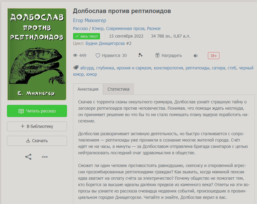 Подписчики прислали новую идею — обозревать не только рекламу, но и аннотации. Так что теперь шансон попасть на всеобщее обозрение есть и у тех книг, авторы которых по какой-то причине не проплатили рекламу Яндексу-кастратору. А чтобы соблюсти правило дивёрсити, отбирать буду в основном лырчики. Там самые смешные примеры. Ну и тех, кто вовремя спрятаться не успеет.