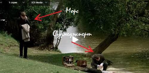 Например, в начале первой серии детективного сериала «Молодой Морс», в одной из первых сцен мы видим, как ГГ отворачивается от лежащего на берегу пруда трупа.
