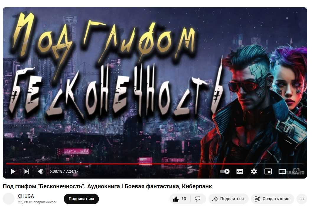 Автор: Ольга МорохКанал CHUGA озвучил «Под глифом „Бесконечность“». Я в восторгах и благодарностях! И нет слов, чтобы выразить, моё восхищение - 7,5 часов это очень много! Титаническая работа! Восторг!