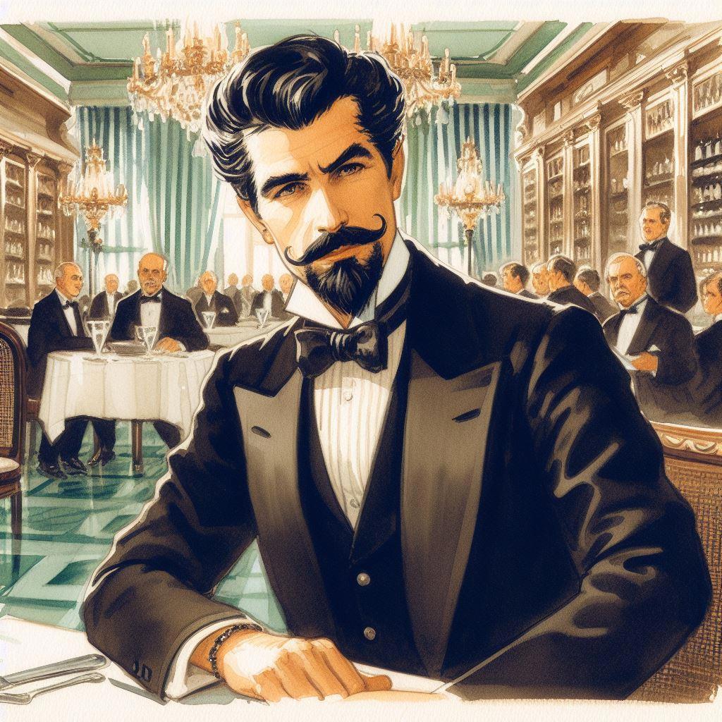 Вышел на веранду черноглазый красавец с кинжальной бородой, во фраке и царственным взором окинул свои владения. Говорили, говорили мистики, что было время, когда красавец не носил фрака, а был опоясан широким кожаным поясом, из-за которого торчали рукояти пистолетов, а его волосы воронова крыла были повязаны алым шелком, и плыл в Караибском море под его командой бриг под черным гробовым флагом с адамовой головой.