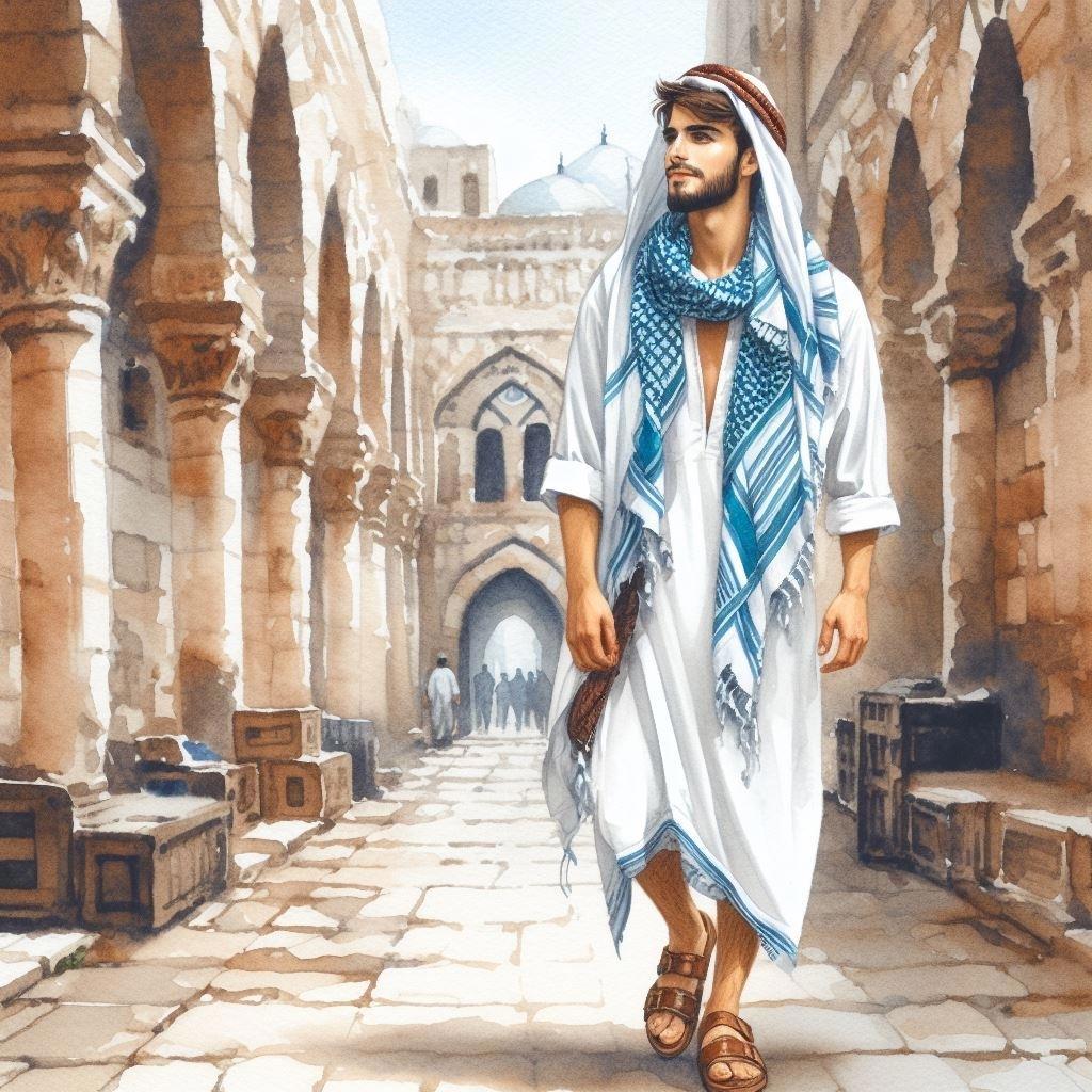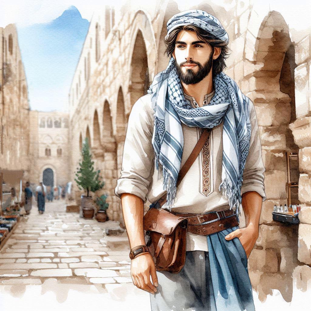 В это самое время из другого переулка в Нижнем Городе, переулка изломанного, уступами сбегавшего к одному из городских прудов, из калитки неприглядного дома, слепой своей стороной выходящего в переулок, а окнами во двор, вышел молодой, с аккуратно подстриженной бородкой человек в белом кефи, ниспадающем на плечи, в новом праздничном голубом таллифе с кисточками внизу и в новеньких скрипящих сандалиях.