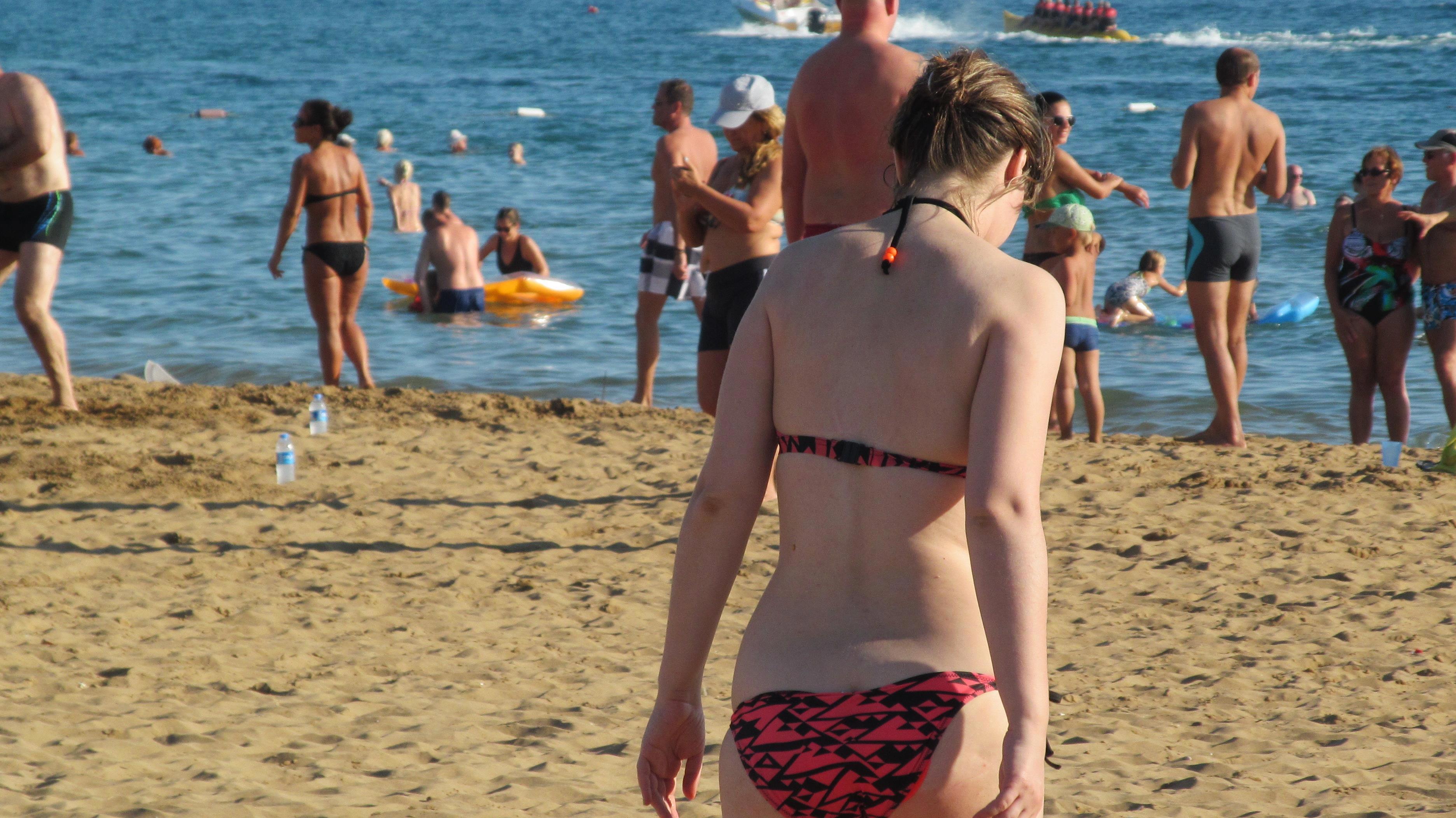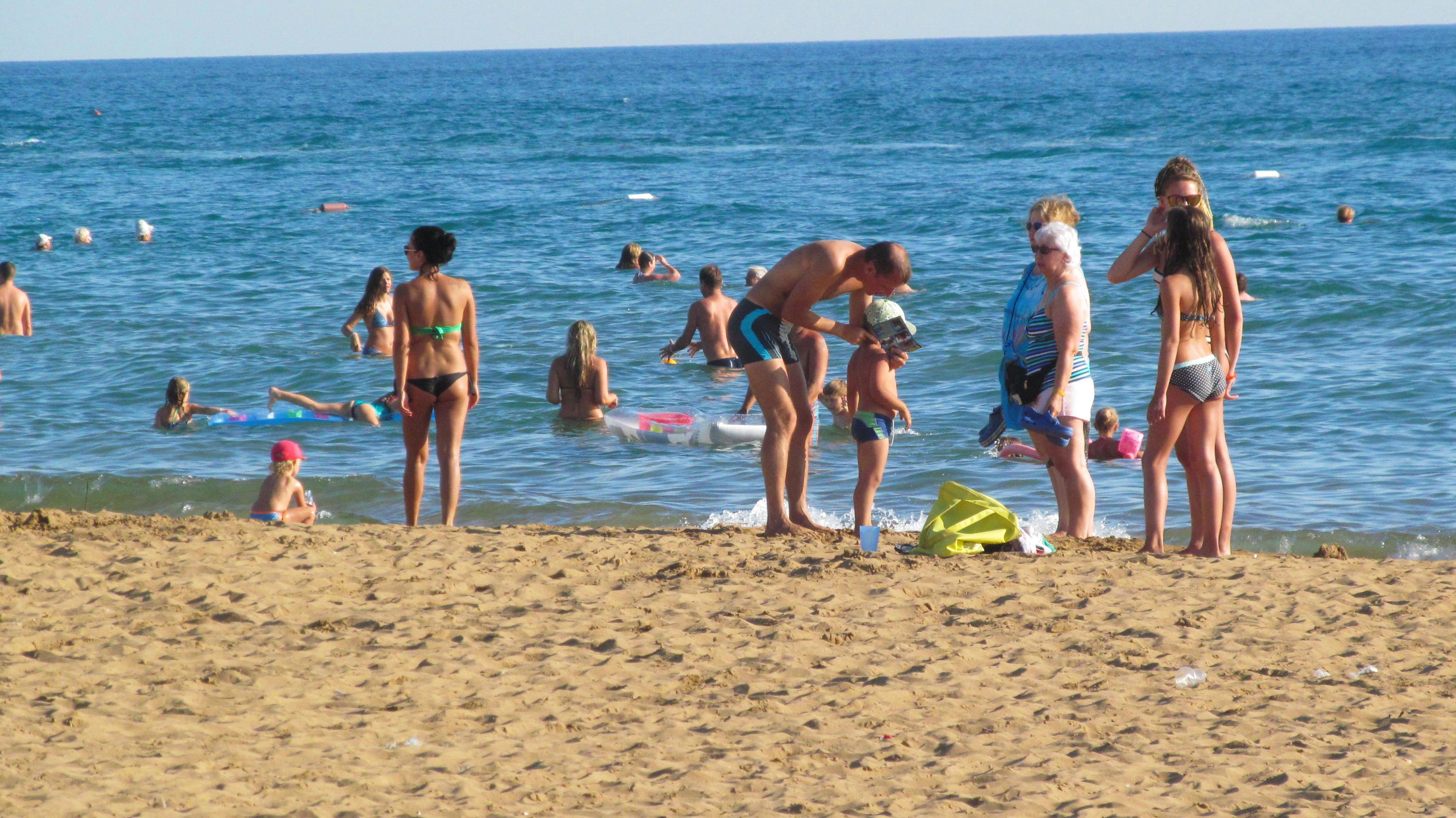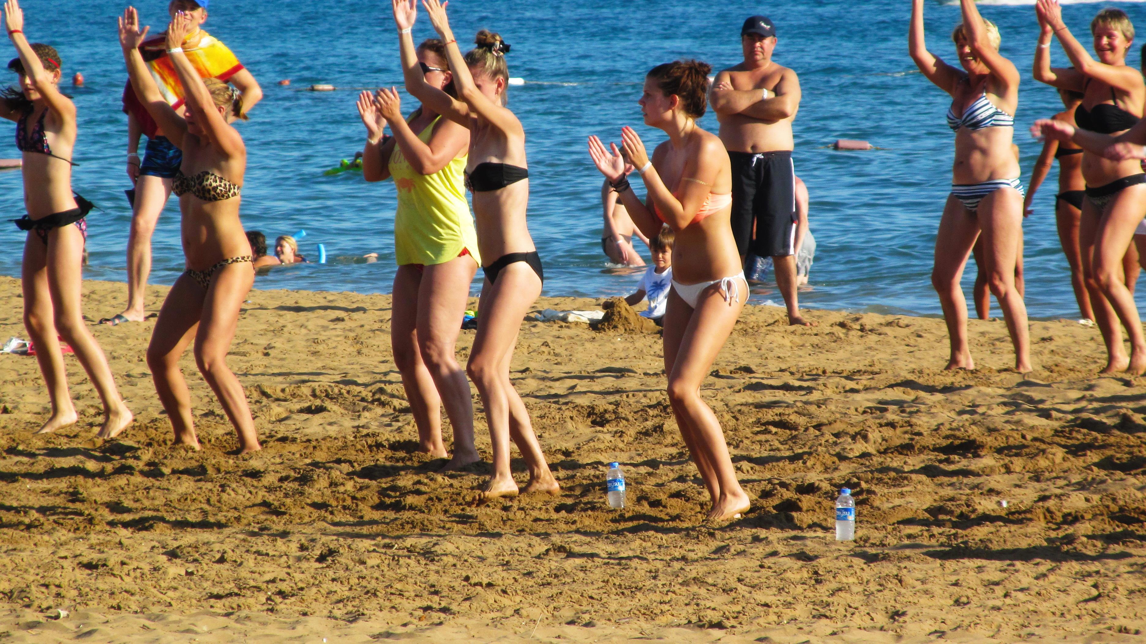 Тут и анимация – девчонки в купальниках под веселую музыку пляшут прямо на песке… Афродиты, блин… Некоторые све6см белые – видать, только что приехали... И сразу на солнце!