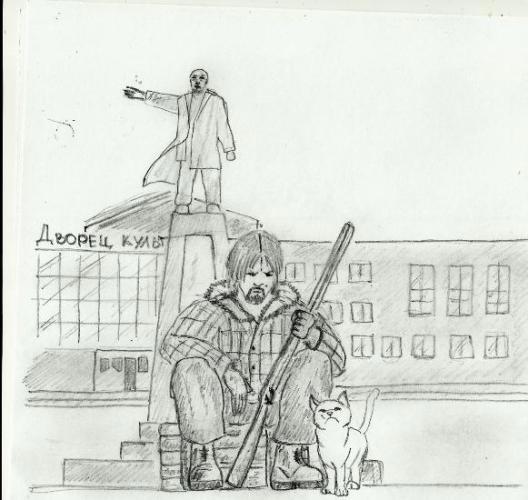 Морхольд на площади Отрадного, городка в ста кэмэ от Самары, с каноничным дедушкой Лениным и милым, но совершенно не каноничным Саблезубом перед расставанием, авторства Андрея Киреева.