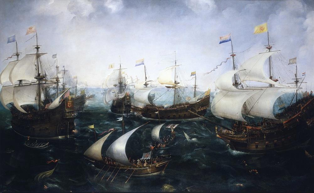 Морское сражение парусников с галерами гребными. Турки похоже. Время чуть позже, но уж больно картинка понравилась.