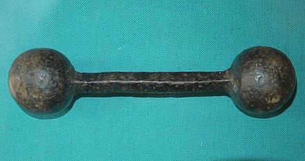 Книпель - два ядра, соединенных перемычкой. Здесь отсутствуют деревянные накладки на "ручку гантели". Прицельность никакая, но зато при попадании рвет паруса, канаты, ванты и все веревочное на себя наматывает и резко ухудшает и управляемость и скорость.