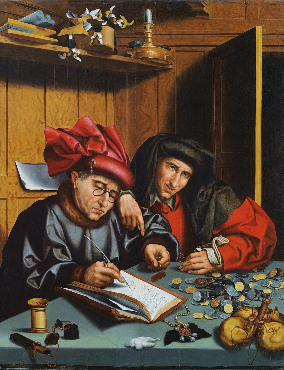 Менялы со всей атрибутикой. В запечатанный сургучом коробках вероятно расписки и акты.