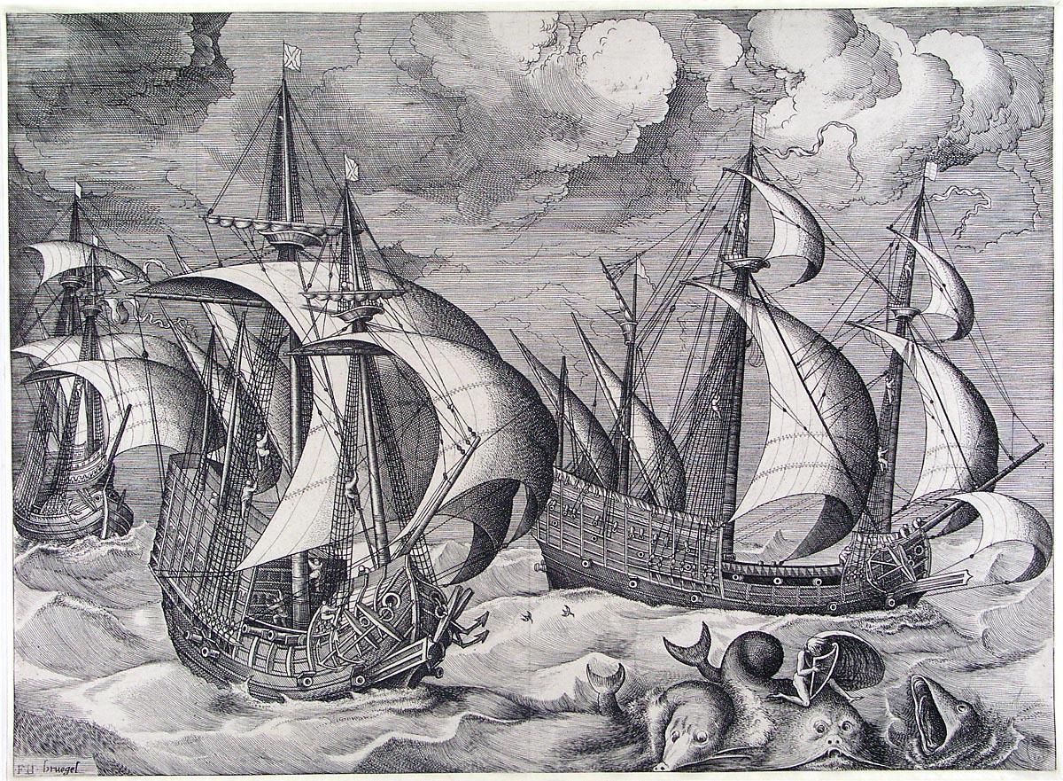 Ганс Гольбейн. На мой безграмотный взгляд - похоже на пинк, разве что люди нарисованы побольше, чем должно. Зато показаны все прелести плавания. Наблюдателям в Воронье гнездо пойло тянут. Ну, там опытные моряки, качка привычна. А срелди пассажиров (походу военных везут) слабосильные рыб кормят ужином своим. К слову - до массового набора на флот всех подряд - бабы на кораблях были обычным делом. Никого они особо не парили. А семья боцмана так и официально могла жить на судне. Там был их дом. Так что запрет на женщинское присутствие пошел с 19 века, когда шли массовые наборы всякой шпаны. До того - вполне себе равноправие.