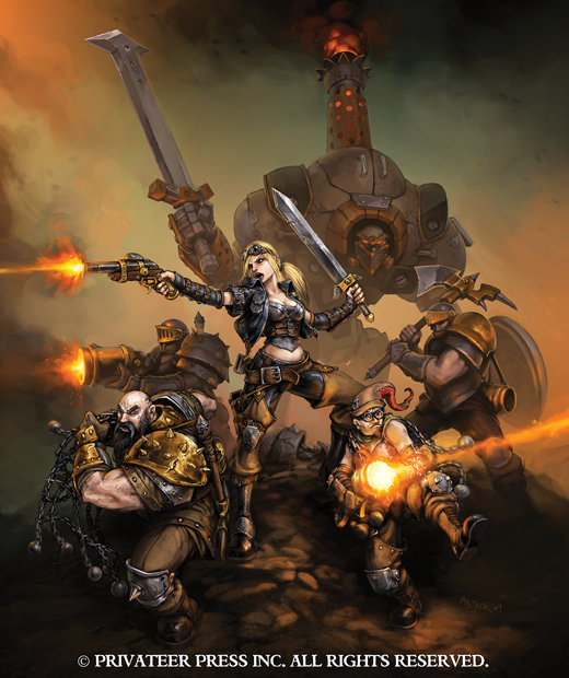 По случаю узнал о существовании такого не слишком распиаренного сеттинга, как "Warmachine" - эдакая реалмеха в фэнтези. Мир, где с помощью магии создают работающие на угле шагающие боевые машины. Как и положено реалмехе, эти машины, именуемые варджеками, просто разновидность военной техники, а не уникальное чудо, и взаимодействуют с пехотой, артиллерией, кавалерий, и так далее. Мир напоминает местами "Вархаммер", а местами даже "Баттлтех", но не до степени смешения - хотя исходно это таки настолка, по которой пока есть лишь одна компьютерная игра, а о книгах я и не слышал.