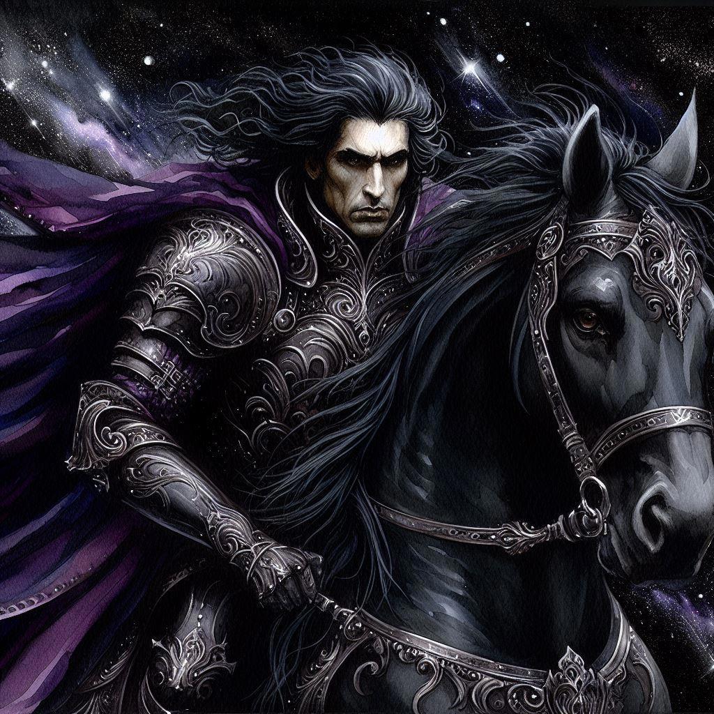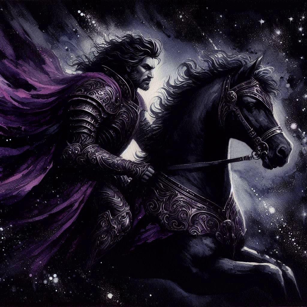 Вряд ли теперь узнали бы Коровьева-Фагота, самозванного переводчика при таинственном и не нуждающемся ни в каких переводах консультанте, в том, кто летел сейчас непосредственно рядом с Воландом по правую руку подруги мастера. На месте того, кто в драной цирковой одежде покинул Воробьевы горы под именем Коровьева-Фагота, теперь скакал, тихо звеня золотою цепью повода, темно-фиолетовый рыцарь с мрачнейшим и никогда не улыбающимся лицом. Он уперся подбородком в грудь, он не глядел на луну, он не интересовался землею, он думал о чем-то своем, летя рядом с Воландом.