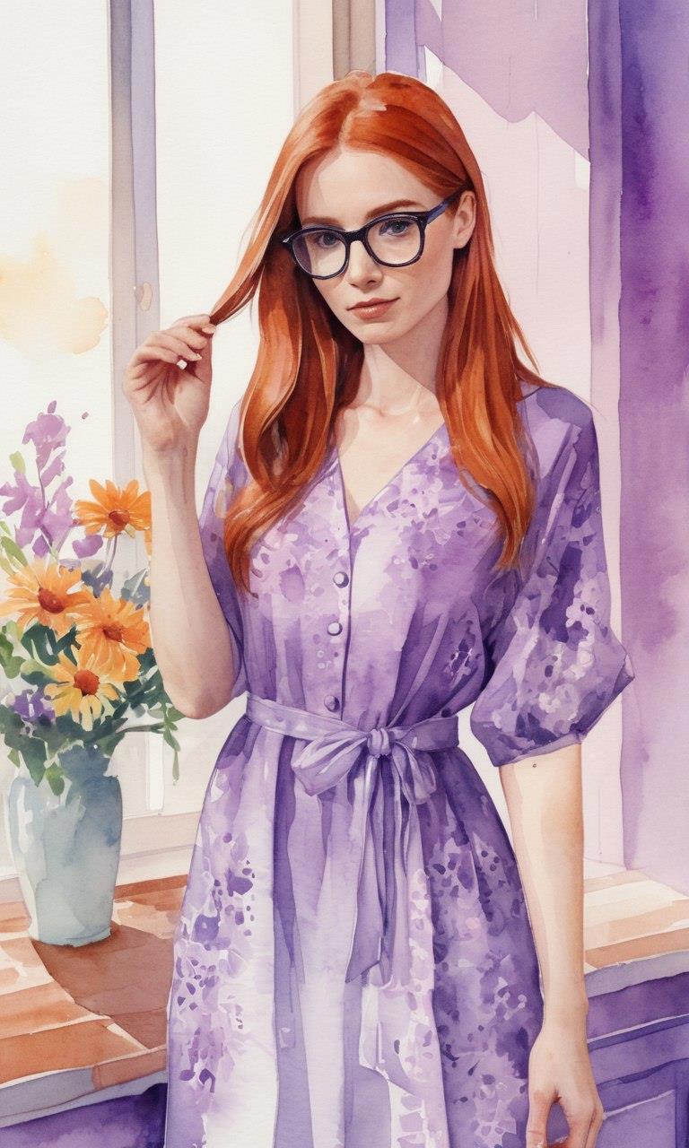 Очки не такие, но ладно, что с нейросети взять. Очки у меня меньше и светлые. Зато прическа и цвет волос практически как в жизни. И платье похоже.