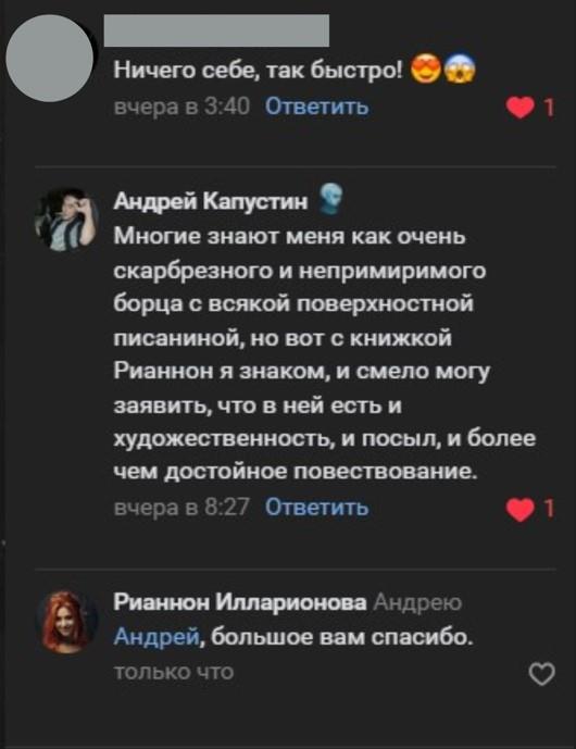 Совершенно случайно увидела, что под постом есть еще комментарии. Неожиданно было увидеть коммент моего первого редактора. Здесь сидит - https://author.today/u/coter_fantasy