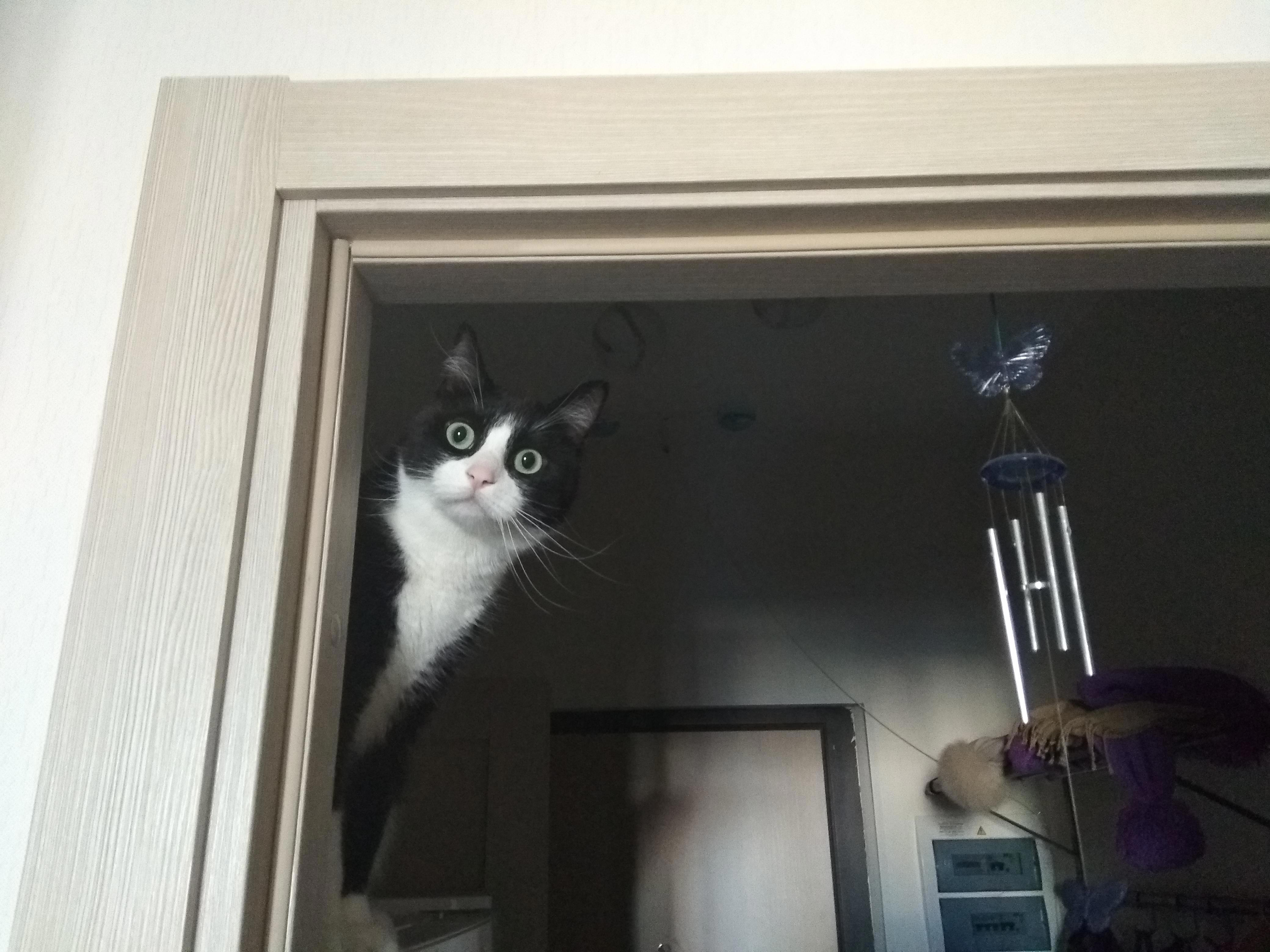 Кошак осторожно вылез из сумки, первым делом дал мне лапой по ногам, но, не выпуская когти, зашипел. Потом забрался на шкаф в ванной и преимущественно там жил с месяц, спускаясь только по делу: поесть, погадить или кошке наволять.