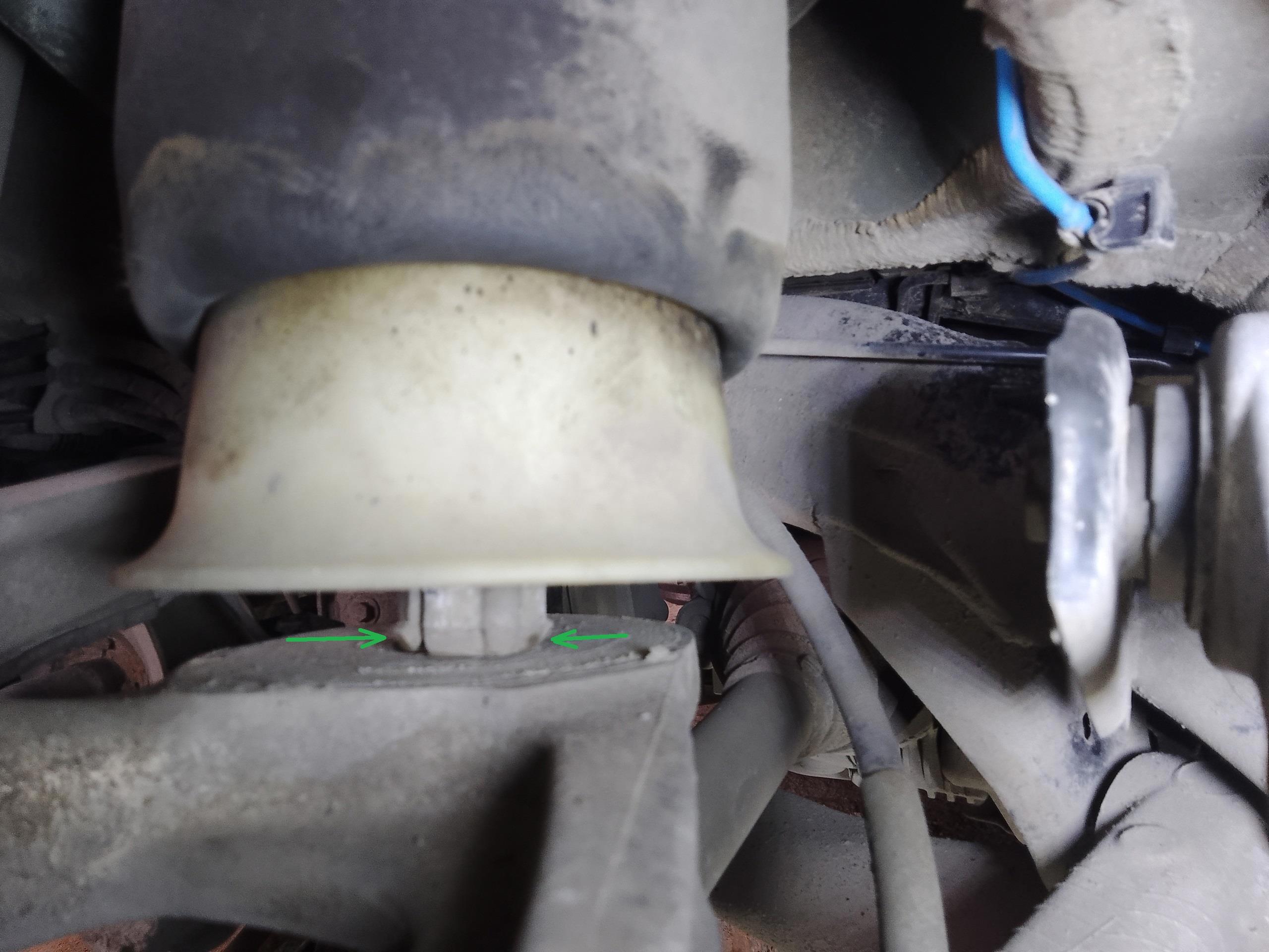 Собираем линию на новую подушку, с помощью помошника, вооруженного фонариком, попадаем подушкой в посадочное на кузове, и фиксируем её поворотом. А дальше наблюдаем картину, что она не доходит до рычага, и зафиксировать её не получается.