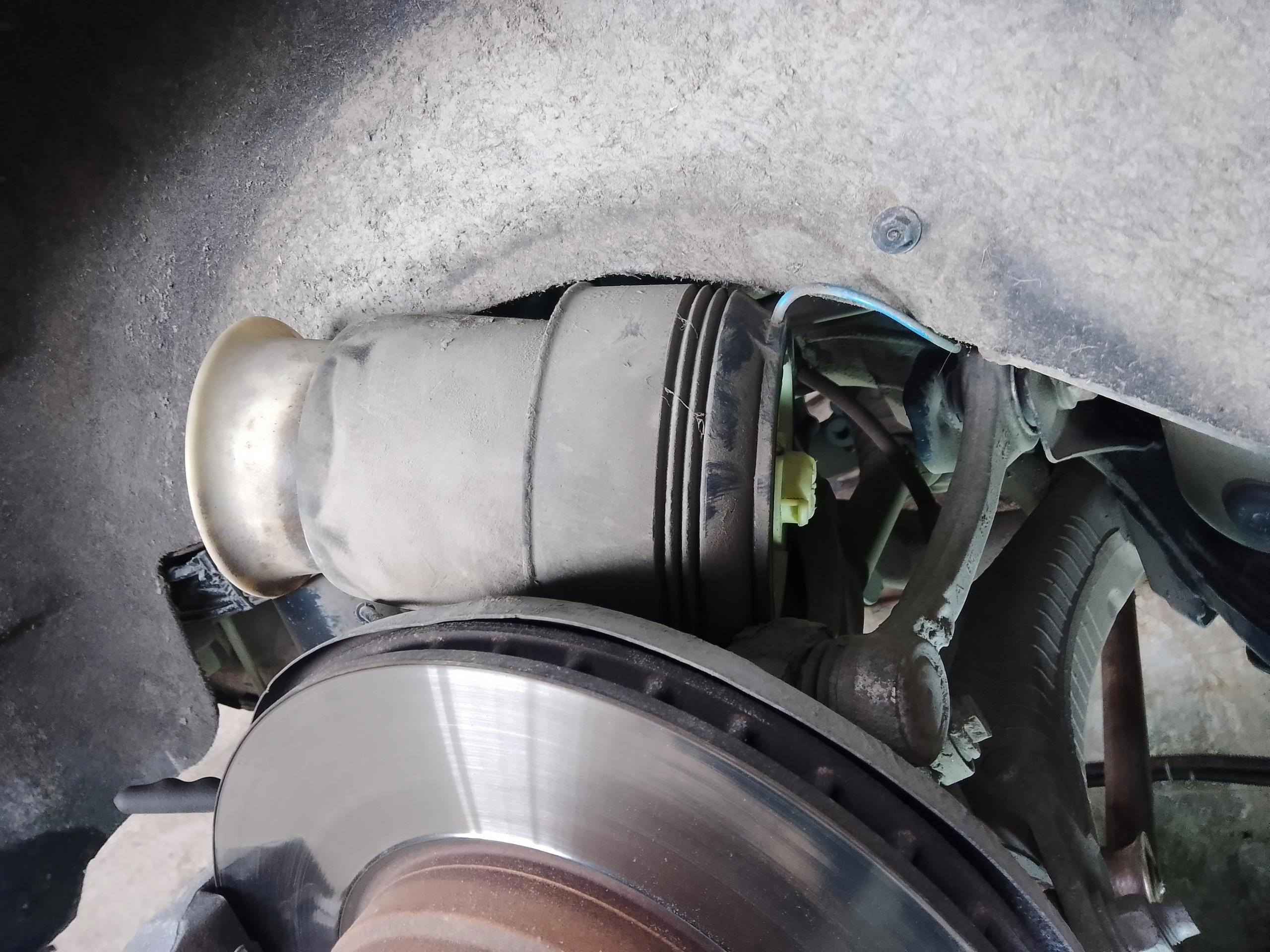 Но это ерунда. Ставим колесо, собираем электроклапан, опускаем машину до етх пор, пока рычаг не коснется подушки, попадаем куда нам надо, ещё опускаем до щелчка (значит подушка зафиксировалась), и потом выставляем машину так, чтоб она стояла ровно. А потом запускаем двигатель, и ждём 2 минуты, пока пневма накачается. Всё! Можно убирать домкрат, прикручивать пластик под порогом, напихать в багажник барахла, и звонить клиенту.