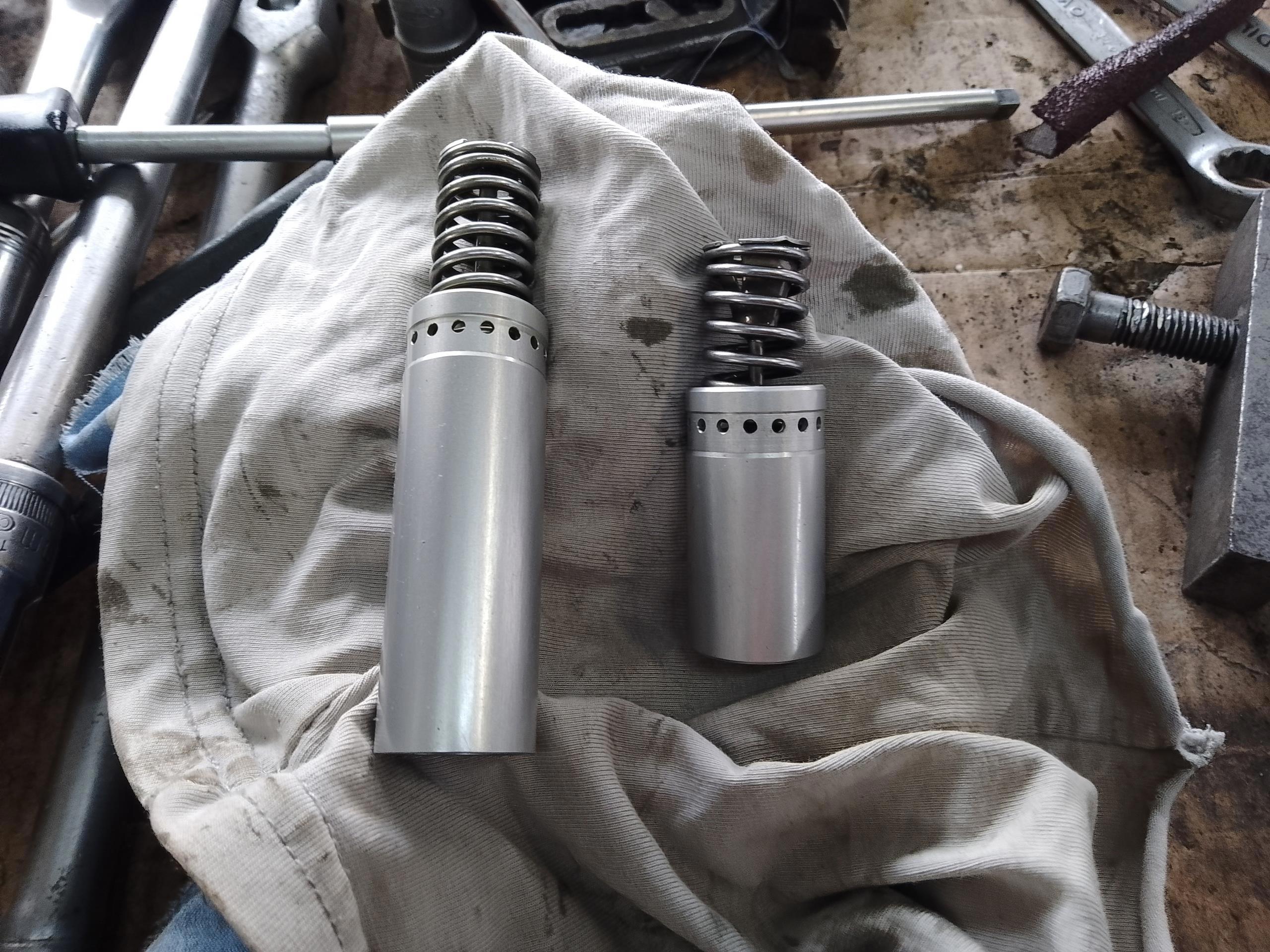 То, что торчит у него в заду вынимается от руки. Смотрим дальше: там ещё что-то. И ни стопоров, ни фиксаторов - ничего нет. Пока я ходил вокруг чесал репу, директор просто выбил второй порень, постучав торцом цилиндра об деревяшку. Два поршня. Да, это - поршни. И на них нет манжет. А ремкит привезли для классического цилиндра, где манжеты на поршнях.