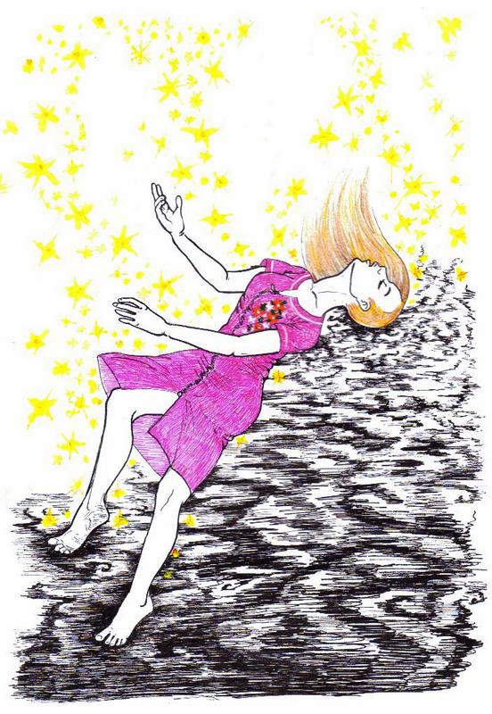 19:20 набросок ПОдразумевается что девушка без сознания падает в серые вихри, а над ней будут кружиться золотые искры. Пока грязновато, ибо карандашный набросок и пришлось сделать контраст в редакторе.