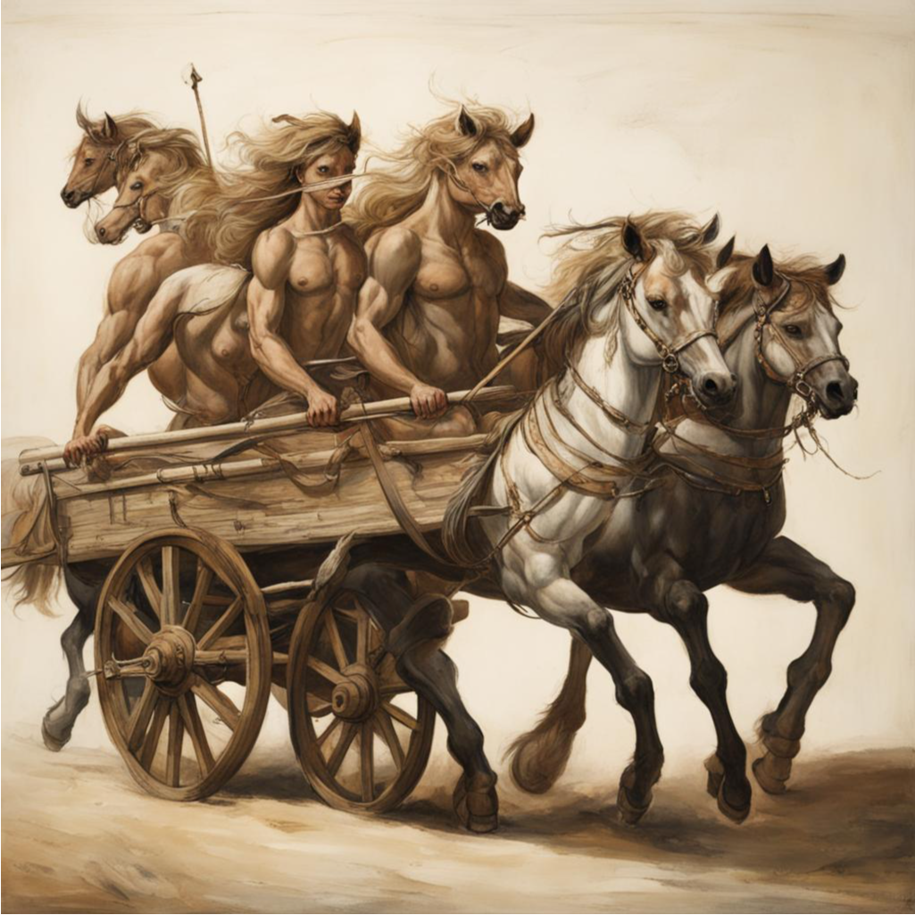 Автор: Владимир ЧекмаревЗаказал нейросети кентавров запряженных в телегу с арбузами (вот такой всплеск сюжета) и вот что она мне выдала...