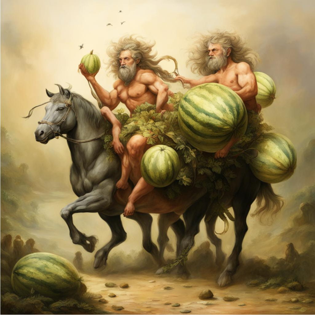 Заказал нейросети кентавров запряженных в телегу с арбузами (вот такой всплеск сюжета) и вот что она мне выдала...