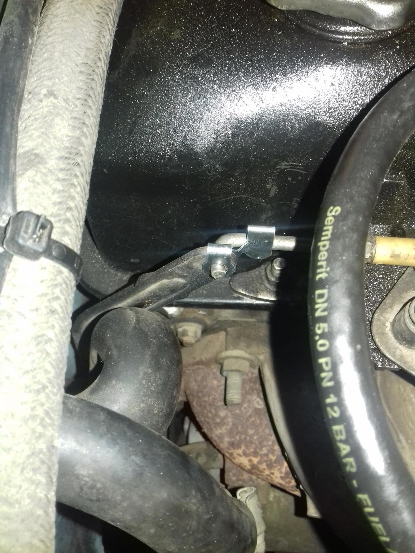 Из мелочей помню, как у меня провалилась педаль газа и аппарат перешел к управлению рулем, тормозом и отчасти сцеплением. Как выяснилось — соскочила хитрогнутая скоба, соединяющая тяги (фотки не мои, нашел аналогичные):