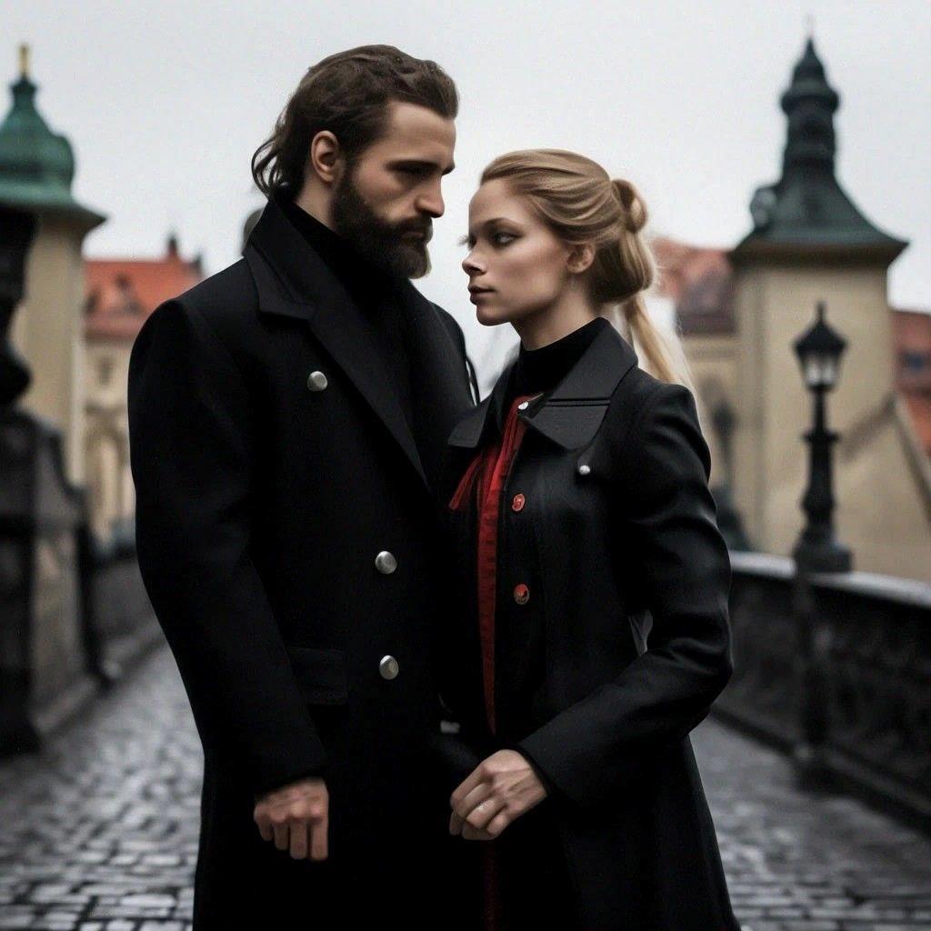 Автор: Сиротенко АндрейДрузья, в середине апреля у меня с соавтором планируется выход новой книги в жанре постапокалипсиса. Здесь, на АТ, мы тоже будем выкладывать произведение. В настоящее время мы его дописываем, поэтому для меня будет первый опыт выкладки в процессе. Обычно я решаюсь разместить на АТ полностью дописанное произведение с редактурой, но всегда надо с чего-то нового начинать. Для произведения нужна обложка. Если вкратце, то у нас там путешественники во времени, которые пытаются изменить мир будущего. Главный герой с эспаньолкой и шикарная блондинка, находящиеся бОльшую часть книги по разные стороны баррикад и пытающиеся докопаться до правды. Есть момент, где они впервые знакомятся на Карловом мосту. Нейросеть рисует что-то такое: