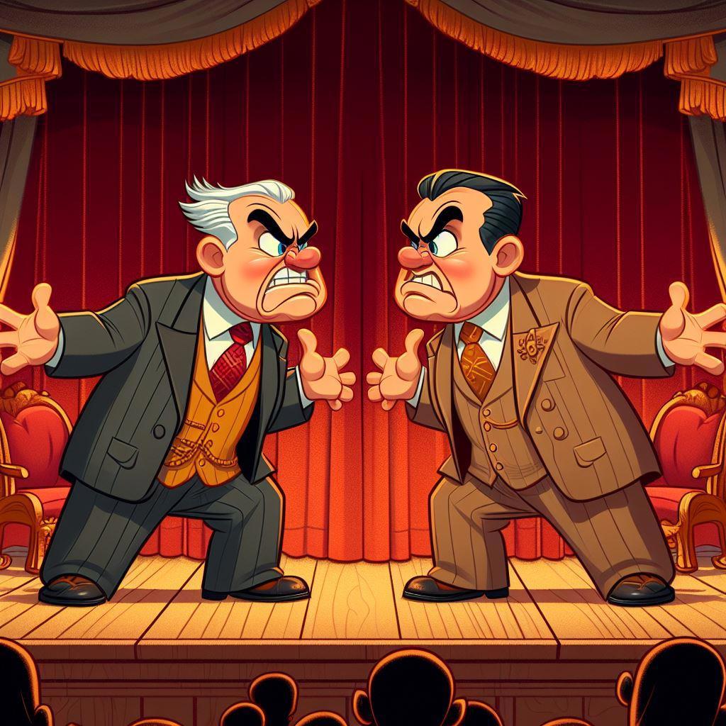 Однажды было решено их помирить. Образовалась инициативная группа, провели переговоры и, наконец, был создан сценарий примирения. После спектакля "Царь Федор Иоанович", поставленного ими когда-то совместно к открытию театра, на сцене должна была выстроиться вся труппа. Под торжественную музыку и аплодисменты справа должен был выйти Станиславский, слева Hемирович. Сойдясь в центре, они пожмут друг другу руки на вечный мир и дружбу. Крики "ура", цветы и прочее... Корифеи сценарий приняли: им самим надоела дурацкая ситуация.
