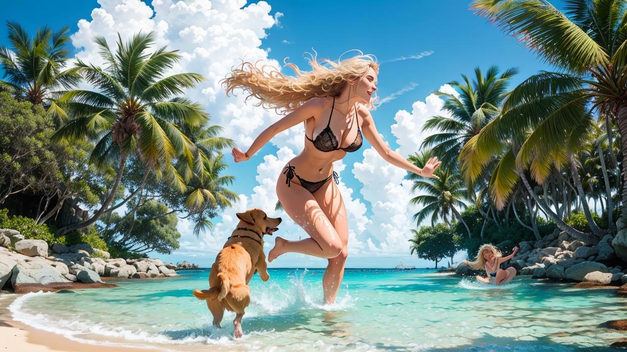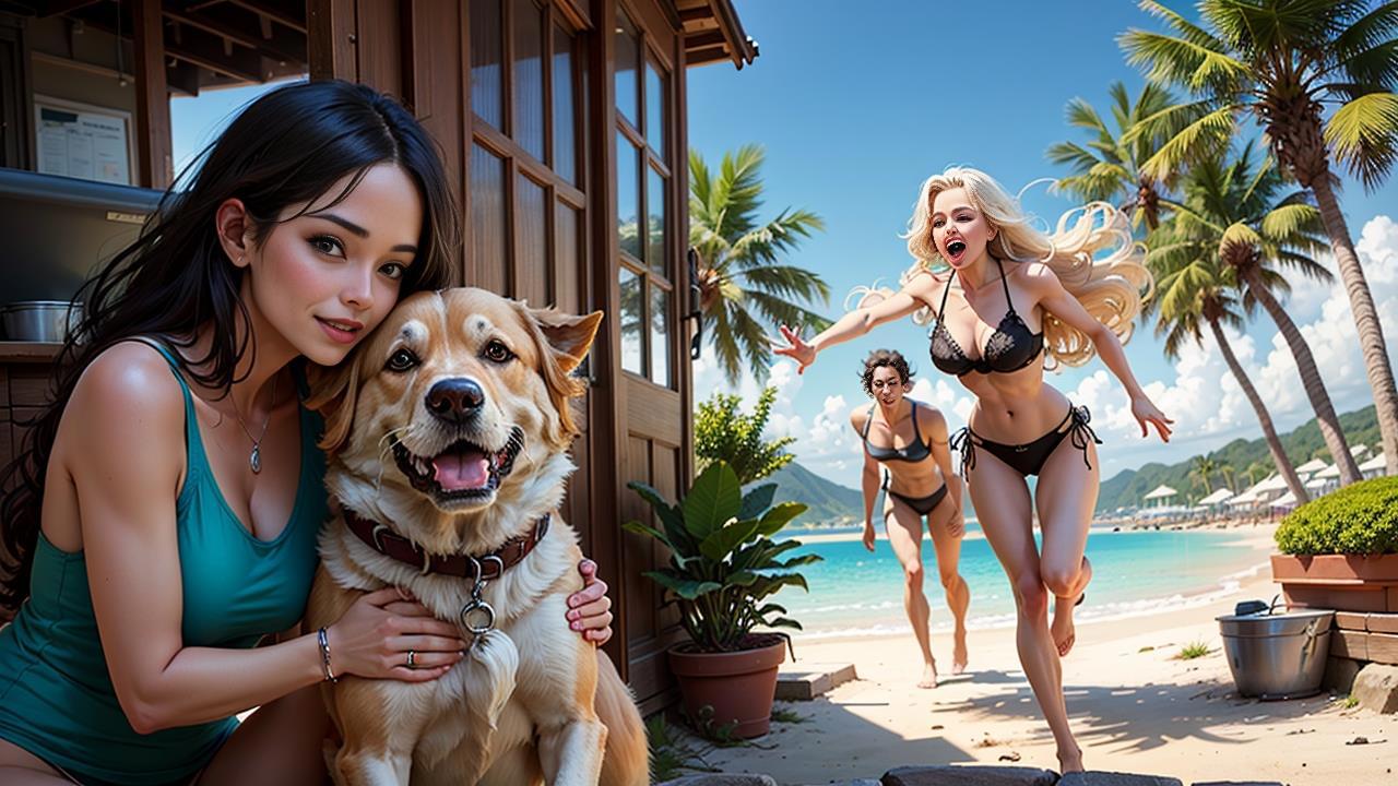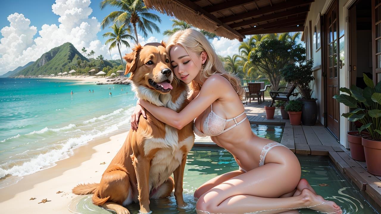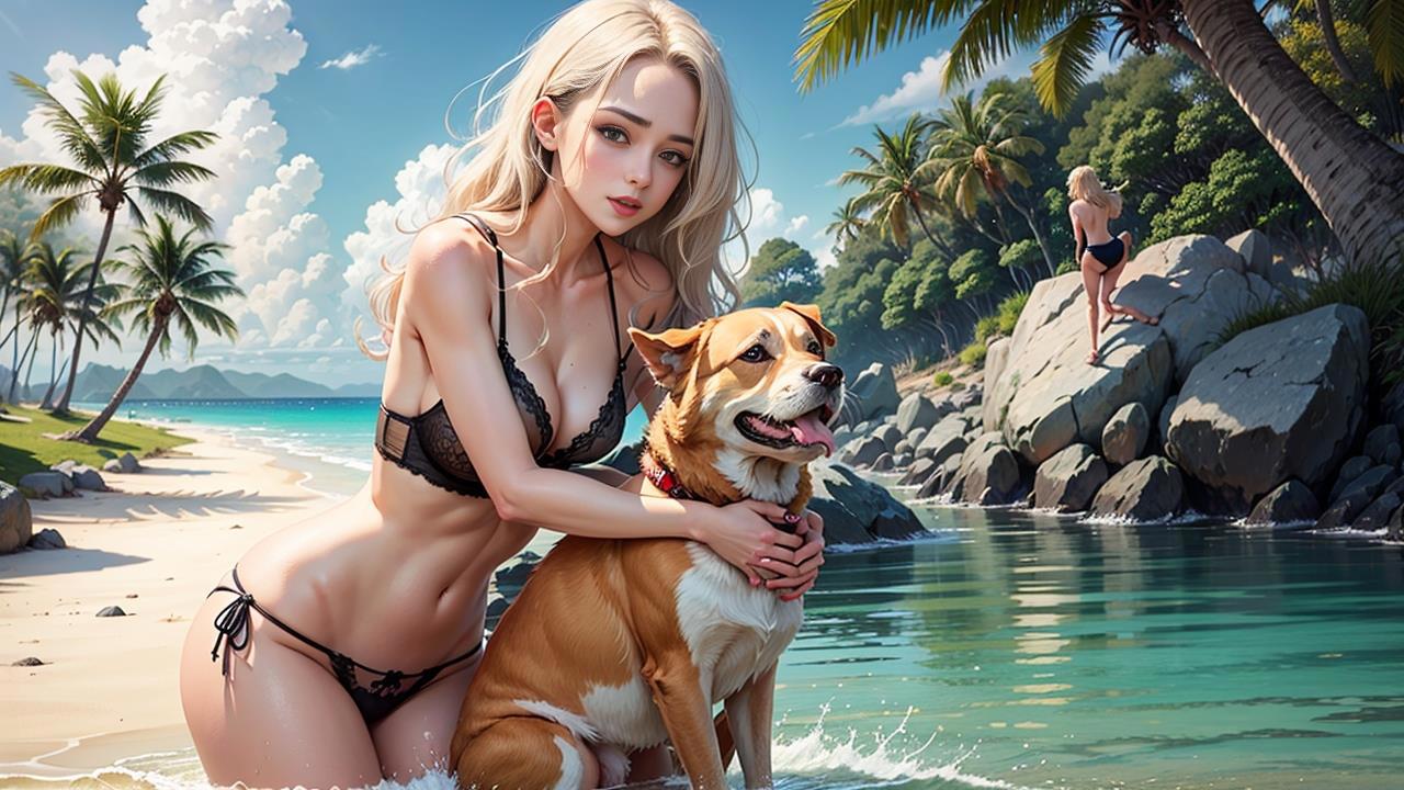 Порадуемся за девчонок. у которых  море, солнце, пальмы и любимые собачки.