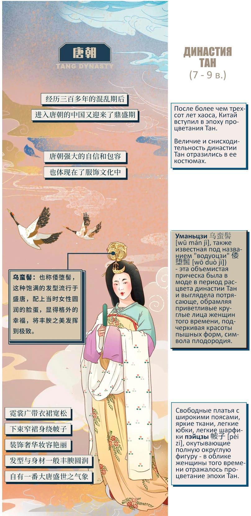 Уманьцзи 乌蛮髻 [wū mán jì], также известная под названием "водуоцзи" 倭堕髻 [wō duò jì]) - эта объемистая прическа была в моде в период расцвета династии Тан и выглядела потрясающе, обрамляя приветливые круглые лица женщин того времени, подчеркивая красоты пышных форм, символа плодородия.