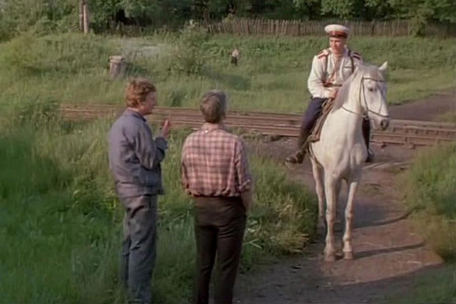 Автор: Владислав РусановВот кадр из фильма "Зеркало для героя". Конечно, примечателен он замечательными актёрами, но для меня он навсегда останется в памяти благодаря вот этому самому белому коню.