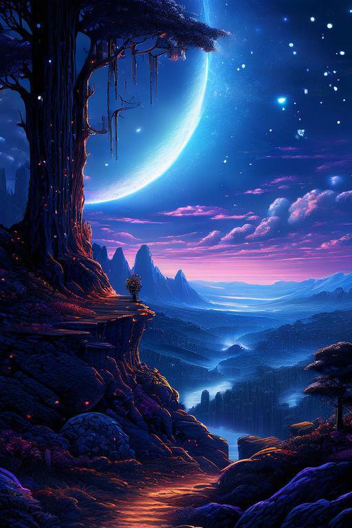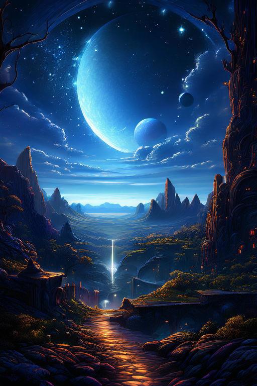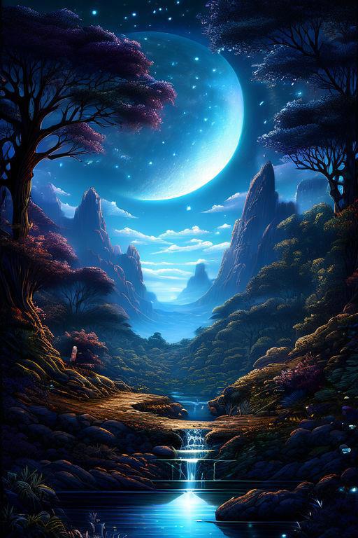 Автор: Николай ЛумрасФэнтезийная долина, луна, небо, красота.